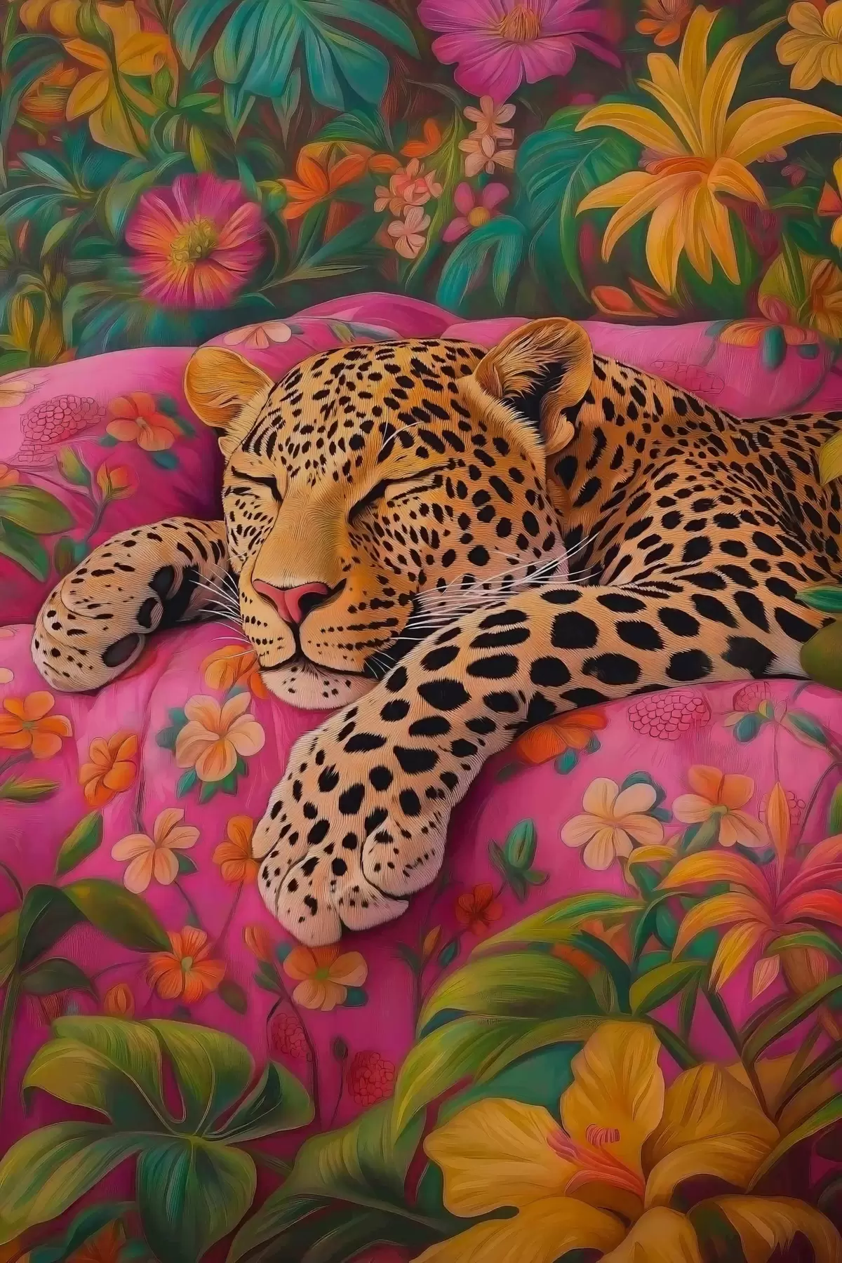 Quadri Un leopardo addormentato tra i fiori Nr s41929