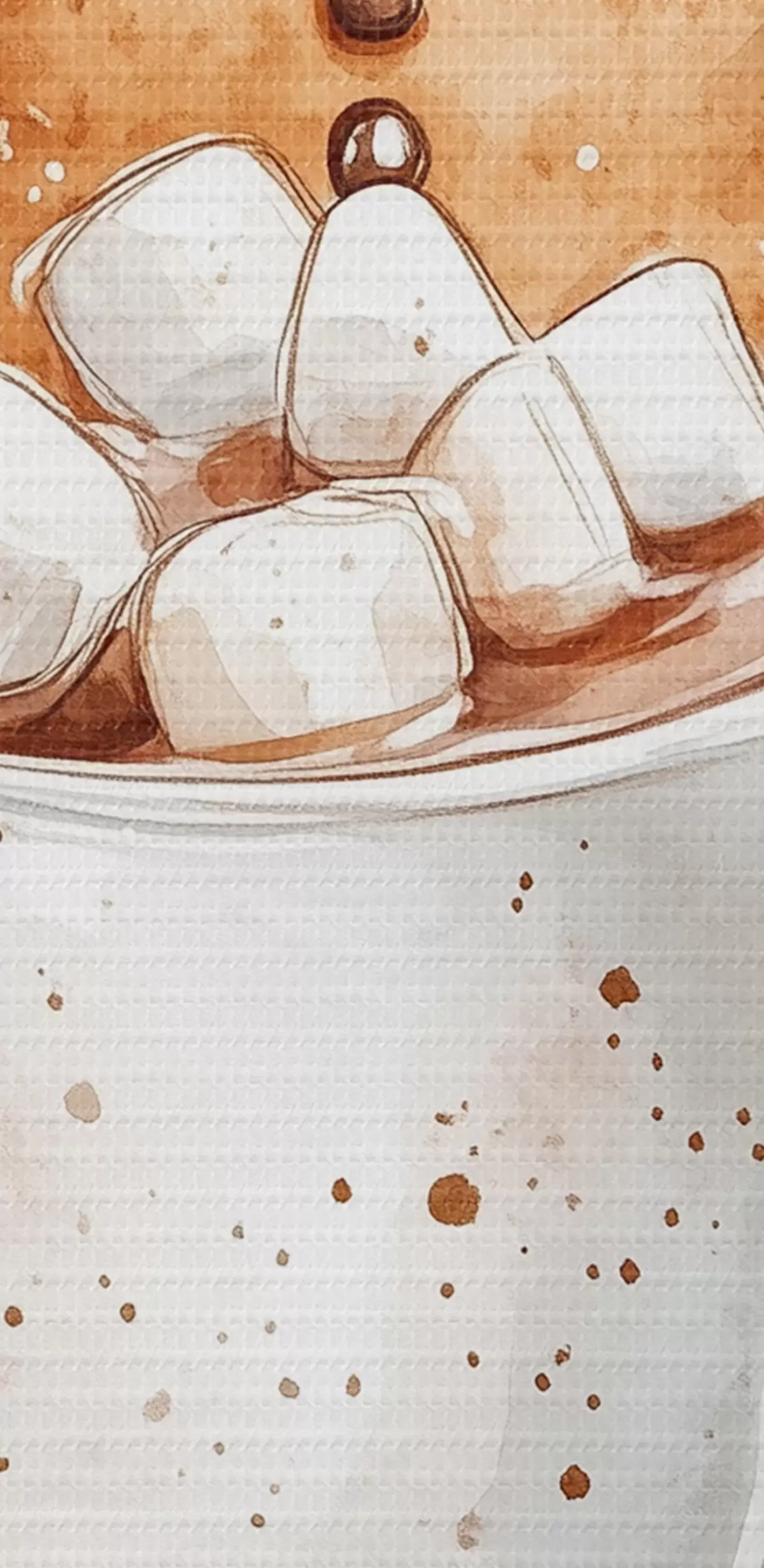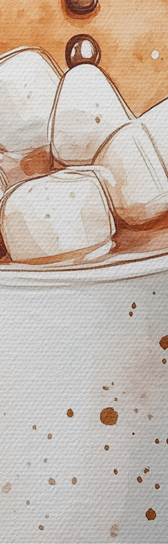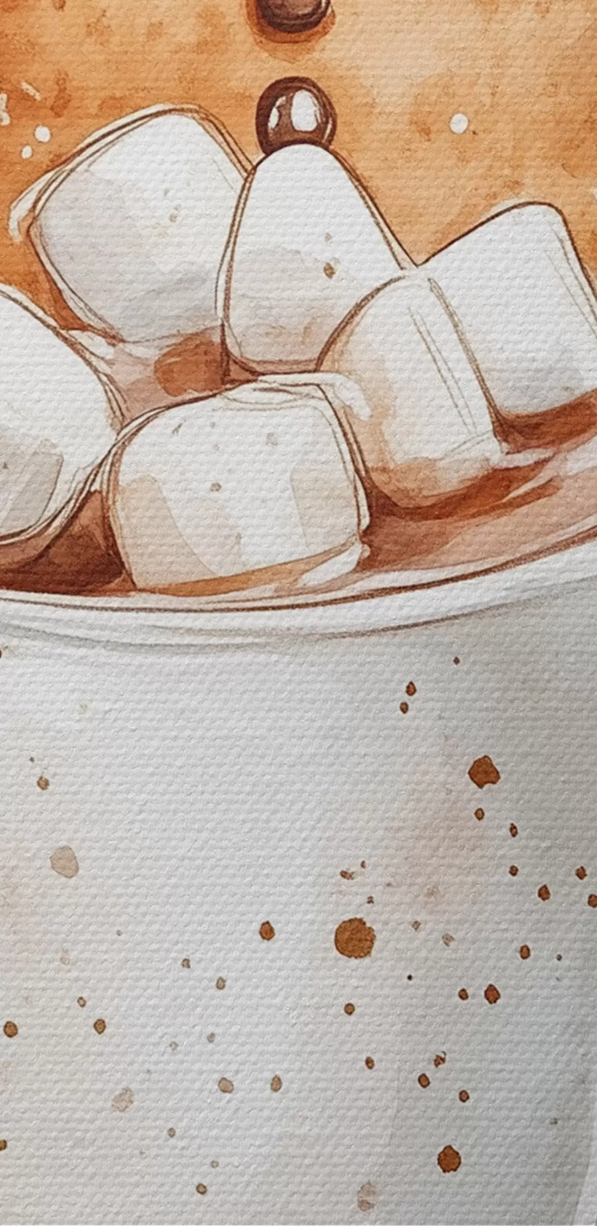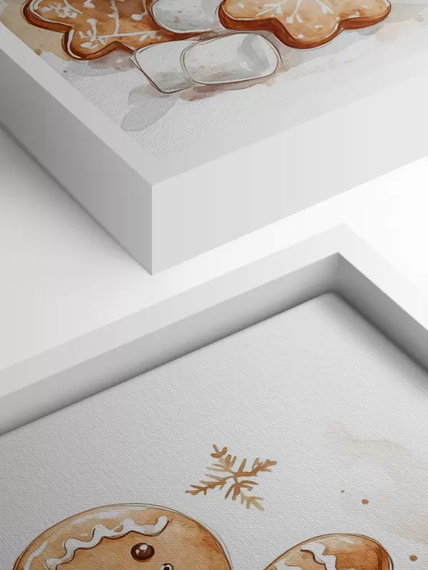 Quadri Omini di pan di zenzero nella tazza di caffè, cannella, marshmallow, stile acquerello, beige Nr s41948
