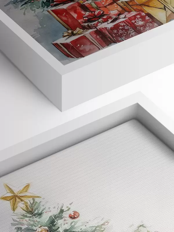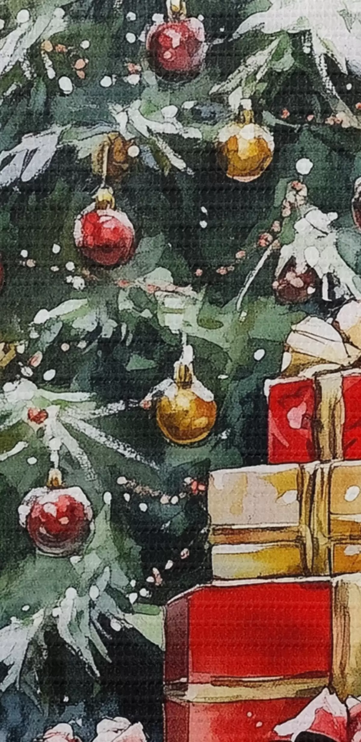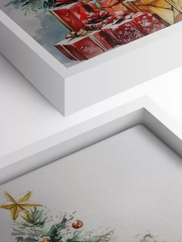 Quadri Albero di Natale festoso con regali incartati, neve, stile acquerello Nr s41953
