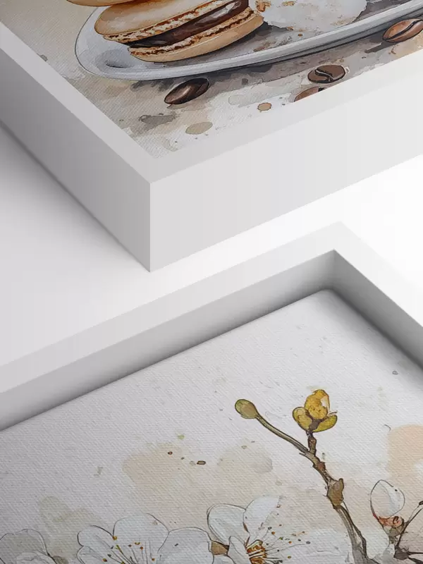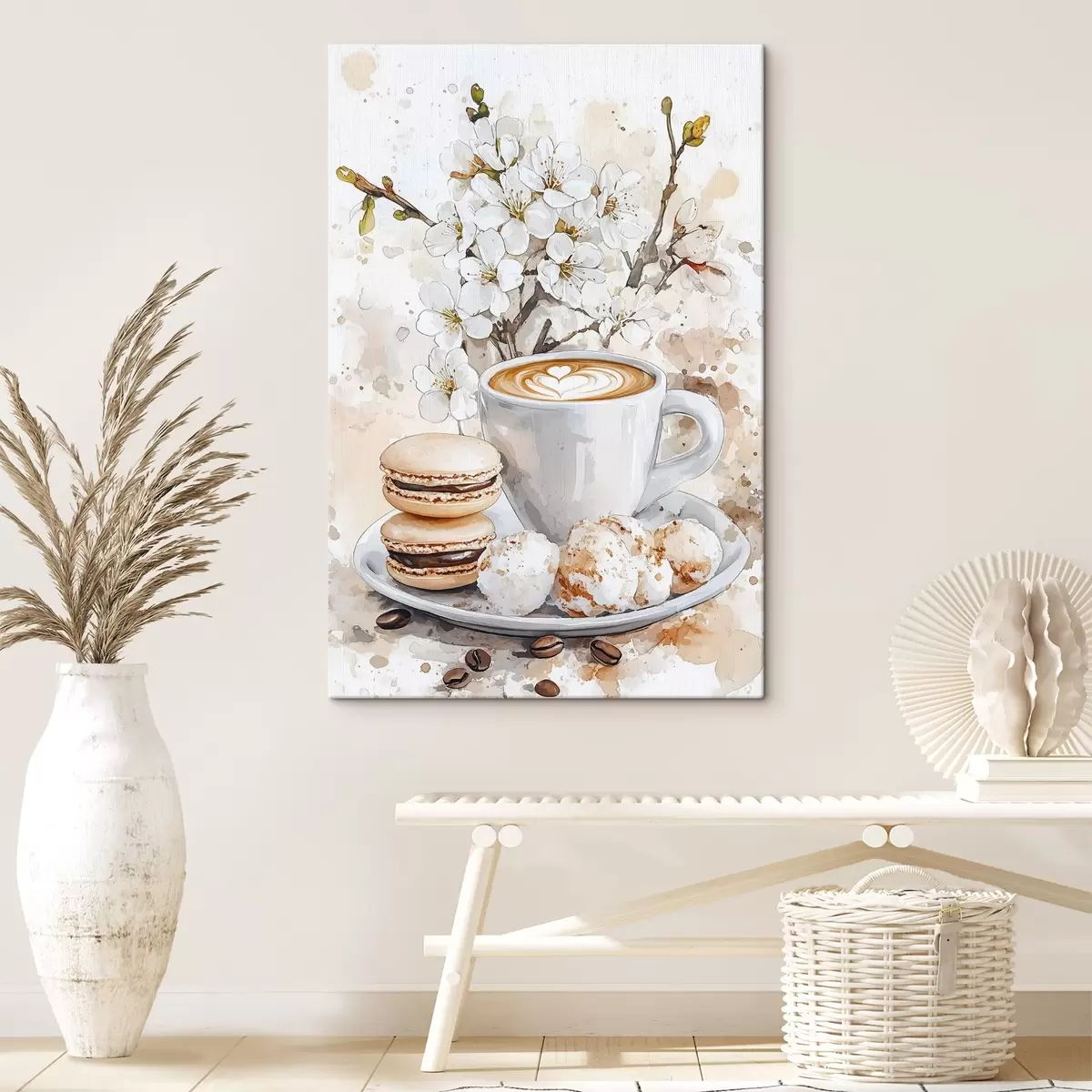 Quadri Bella tazza di caffè, fiori di gelsomino, amaretti, colori tenui dell'acquerello Nr s41964