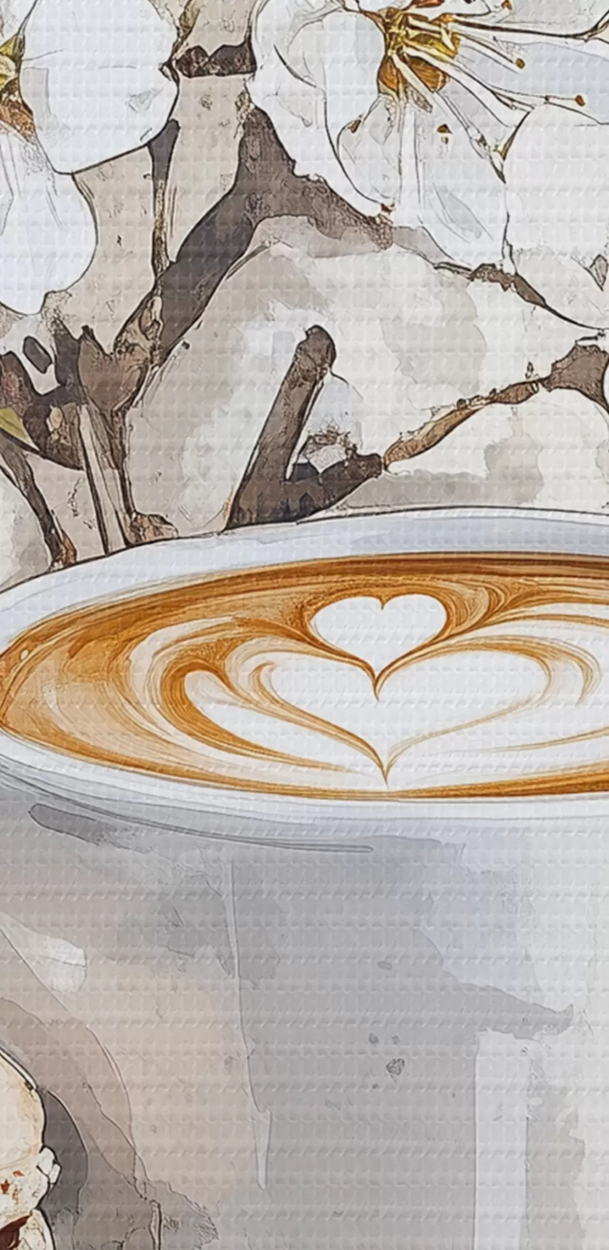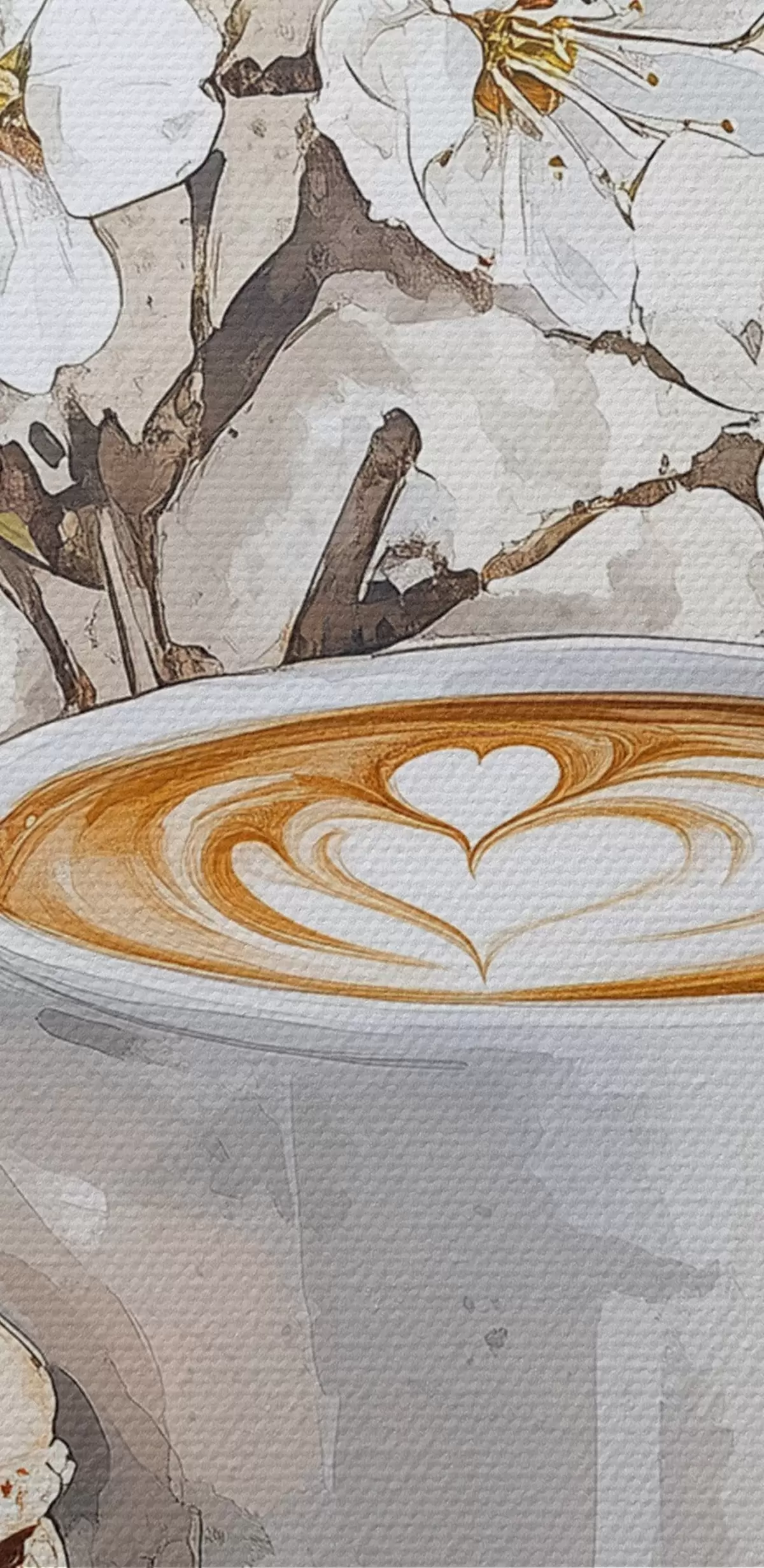 carta da parati Bella tazza di caffè, fiori di gelsomino, amaretti, colori tenui dell'acquerello nr. s41964