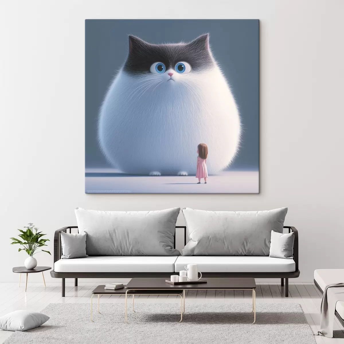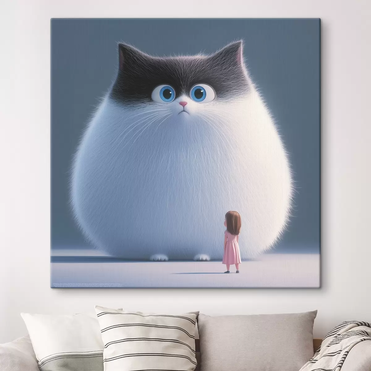 Quadri Un gatto peloso sorpreso con una ragazza in stile illustrazione Nr s41974