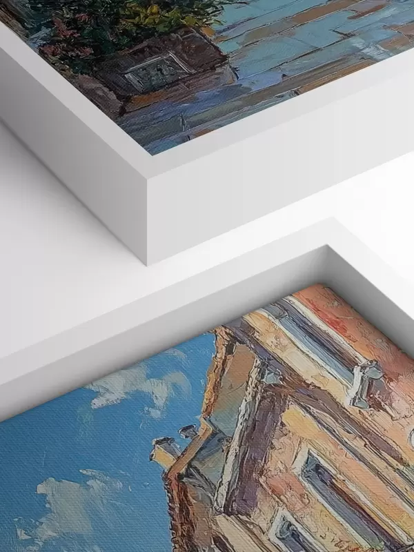 Vendiamo quadri su barella: si tratta di un telaio di legno su cui viene tesa la tela. Questo quadro non ha bisogno di essere incorniciato; è possibile appenderlo direttamente alla parete.