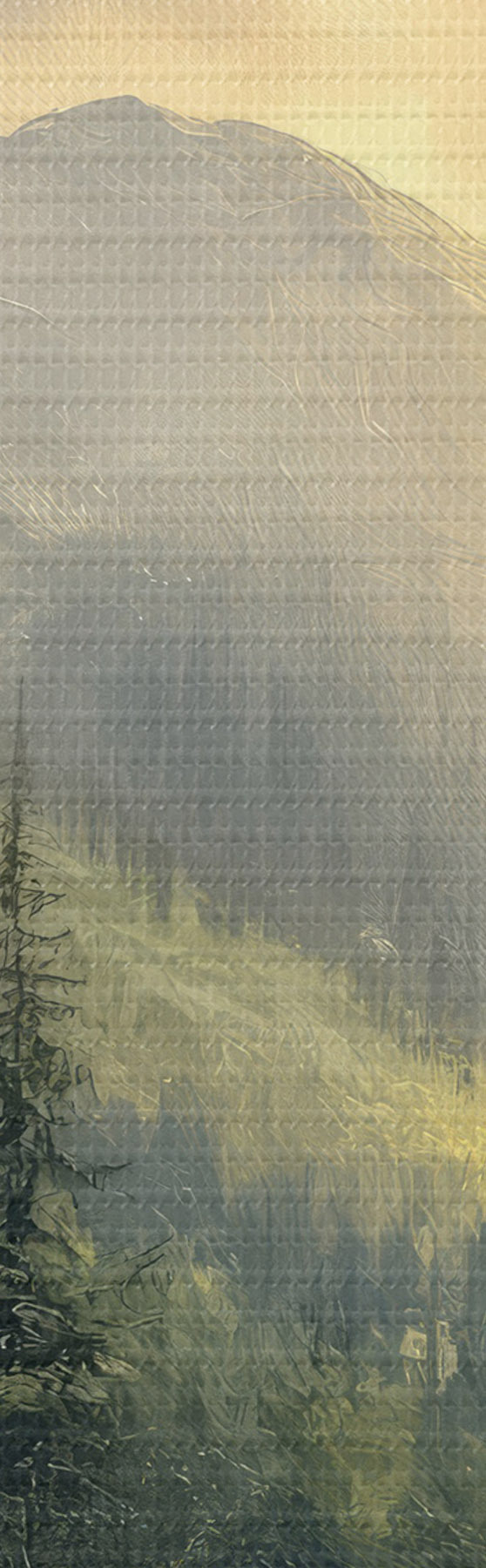 carta da parati montagne nella nebbia e alberi nr. s42019