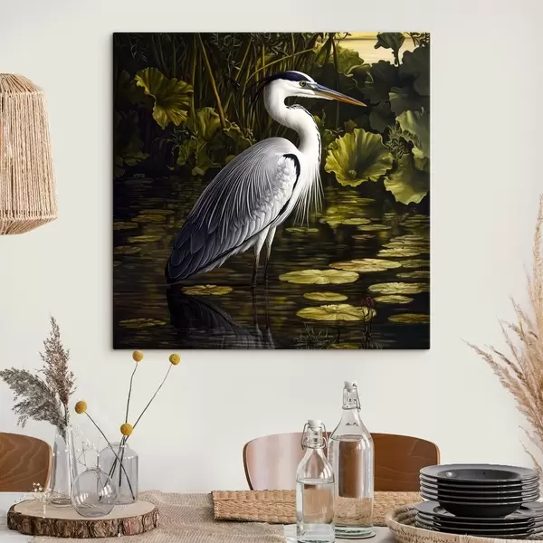Quadri Un airone in acqua su uno sfondo di palude Nr s42039