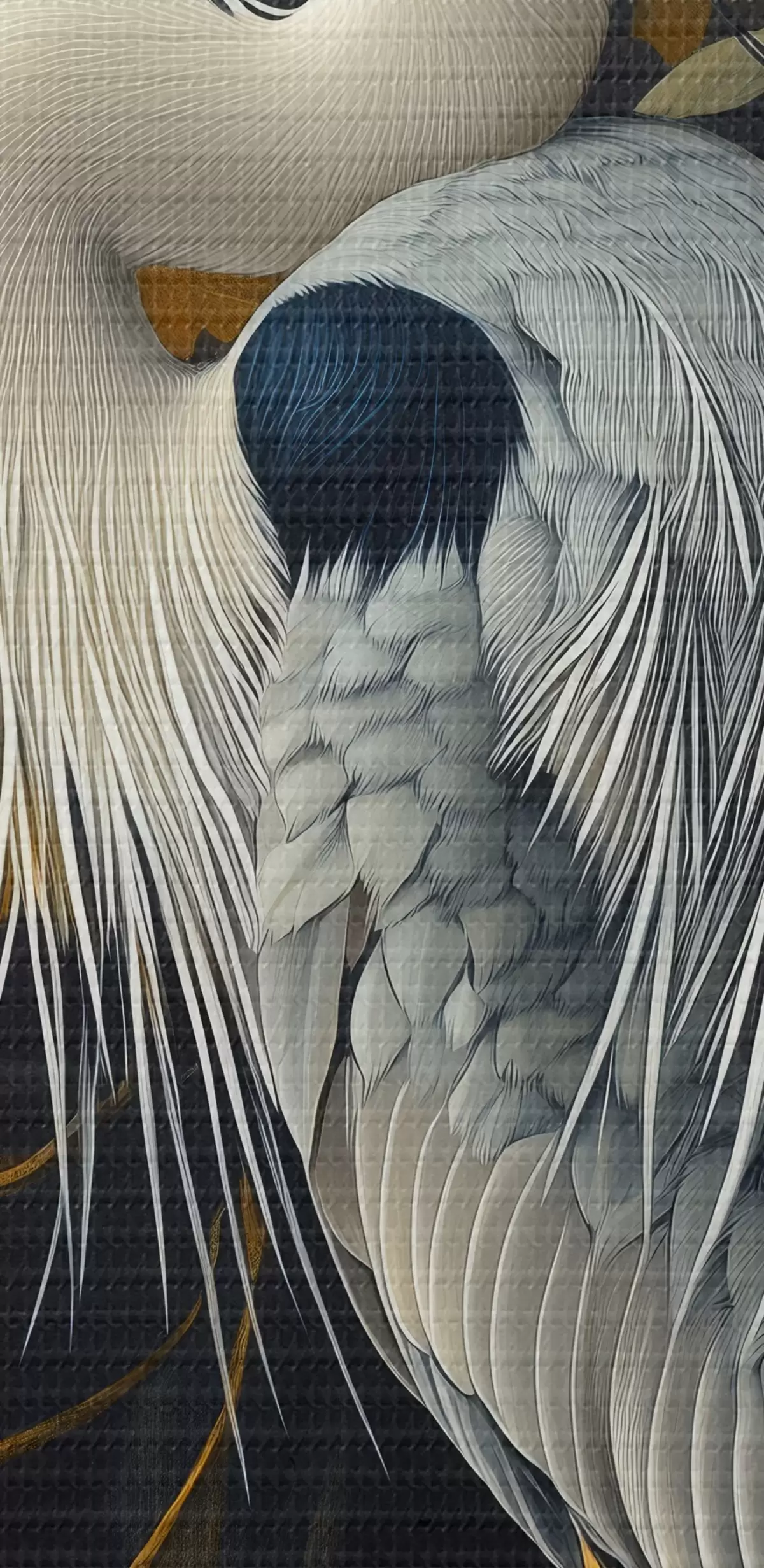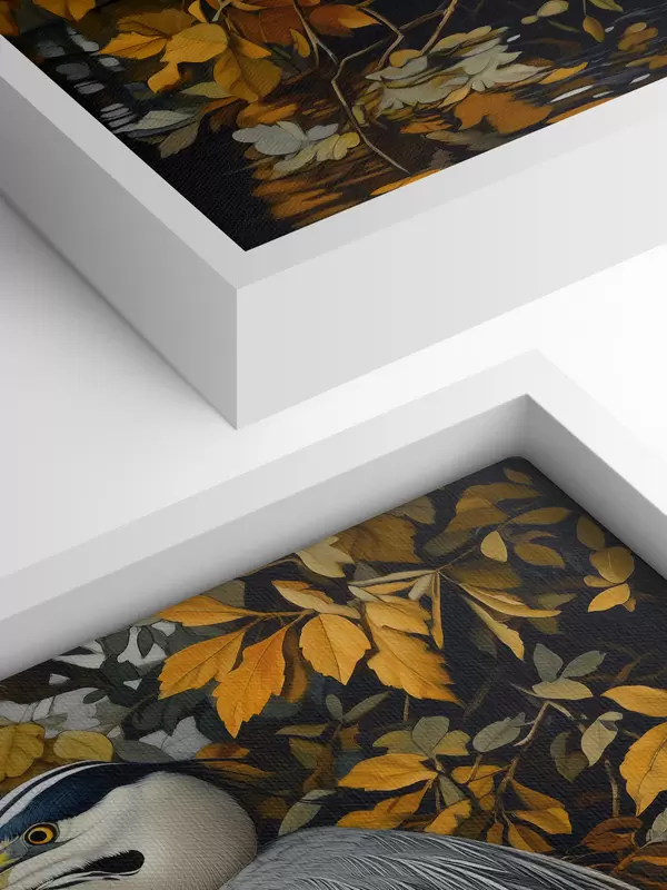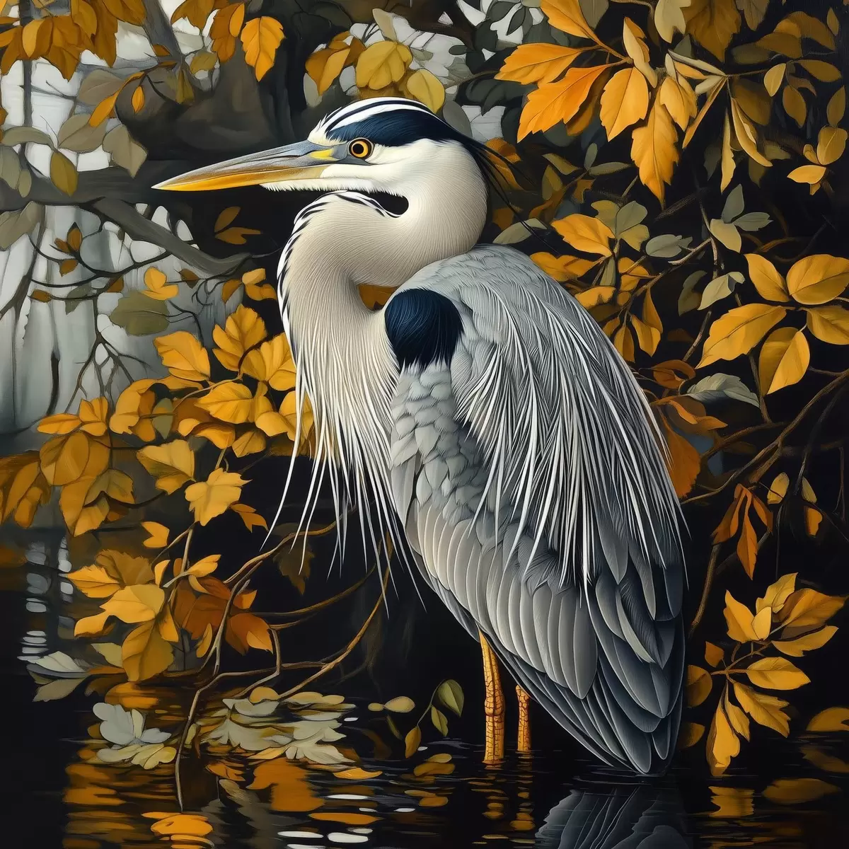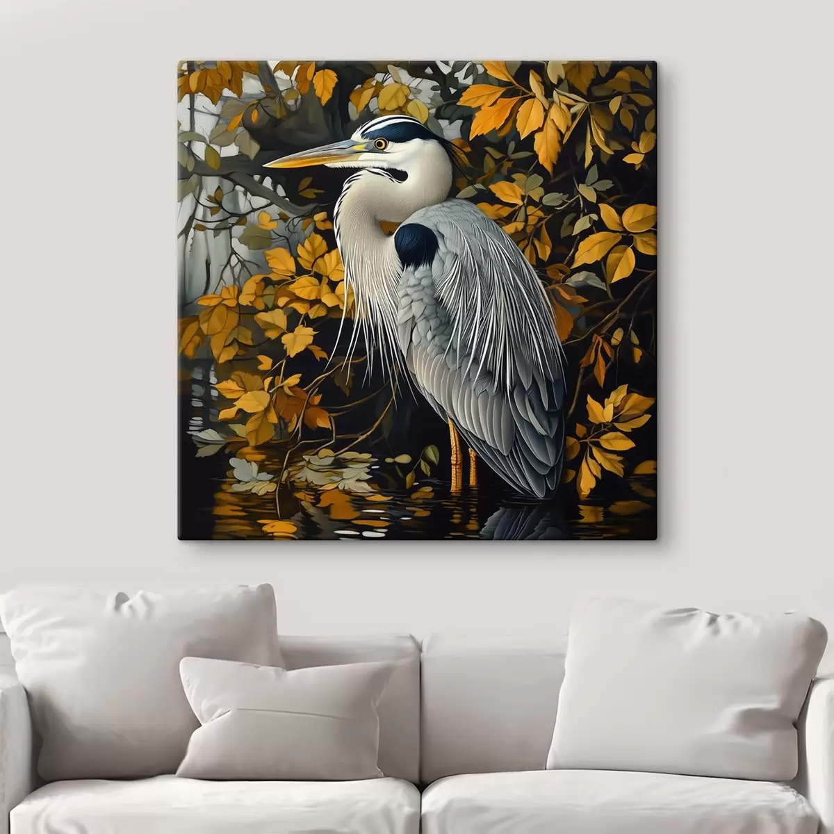 Quadri Un airone in acqua su uno sfondo di foglie autunnali Nr s42041