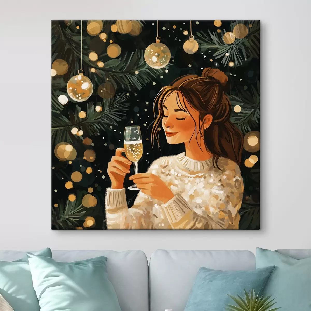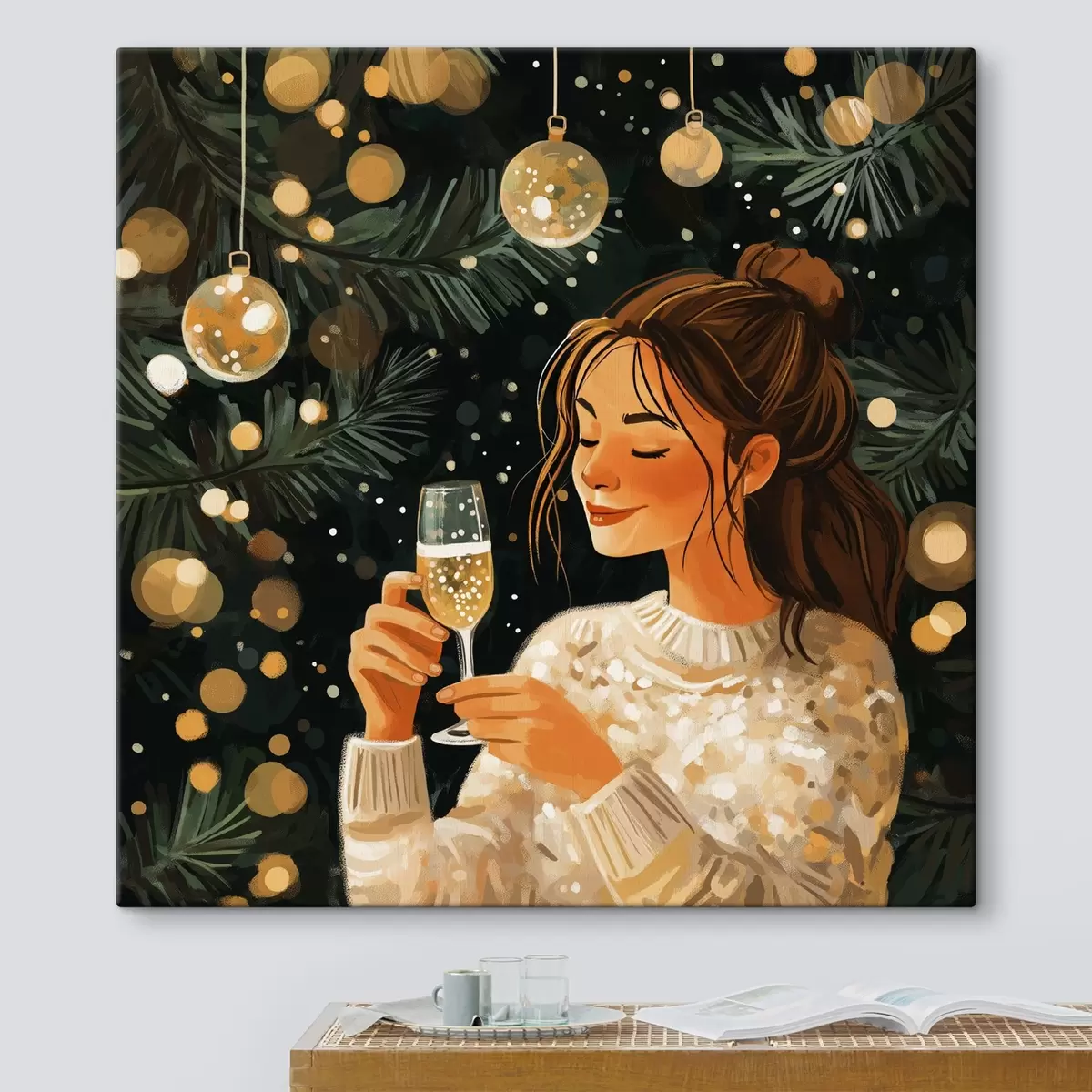 Quadri Una ragazza con un bicchiere di champagne a Capodanno Nr s42102