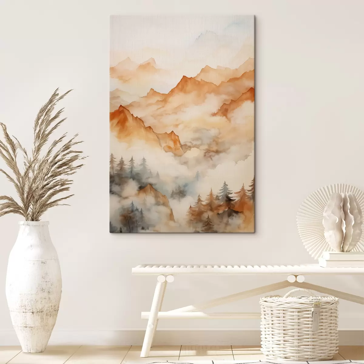 Quadri Foresta e montagne imitazione dell'acquerello, tonalità arancione Nr s42119