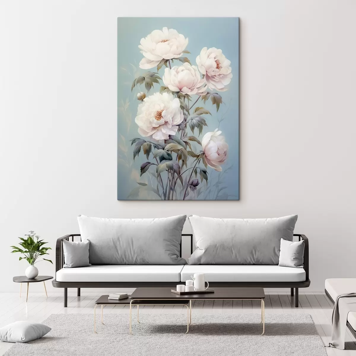Quadri Peonie su sfondo blu pastello stile vintage Nr s42123
