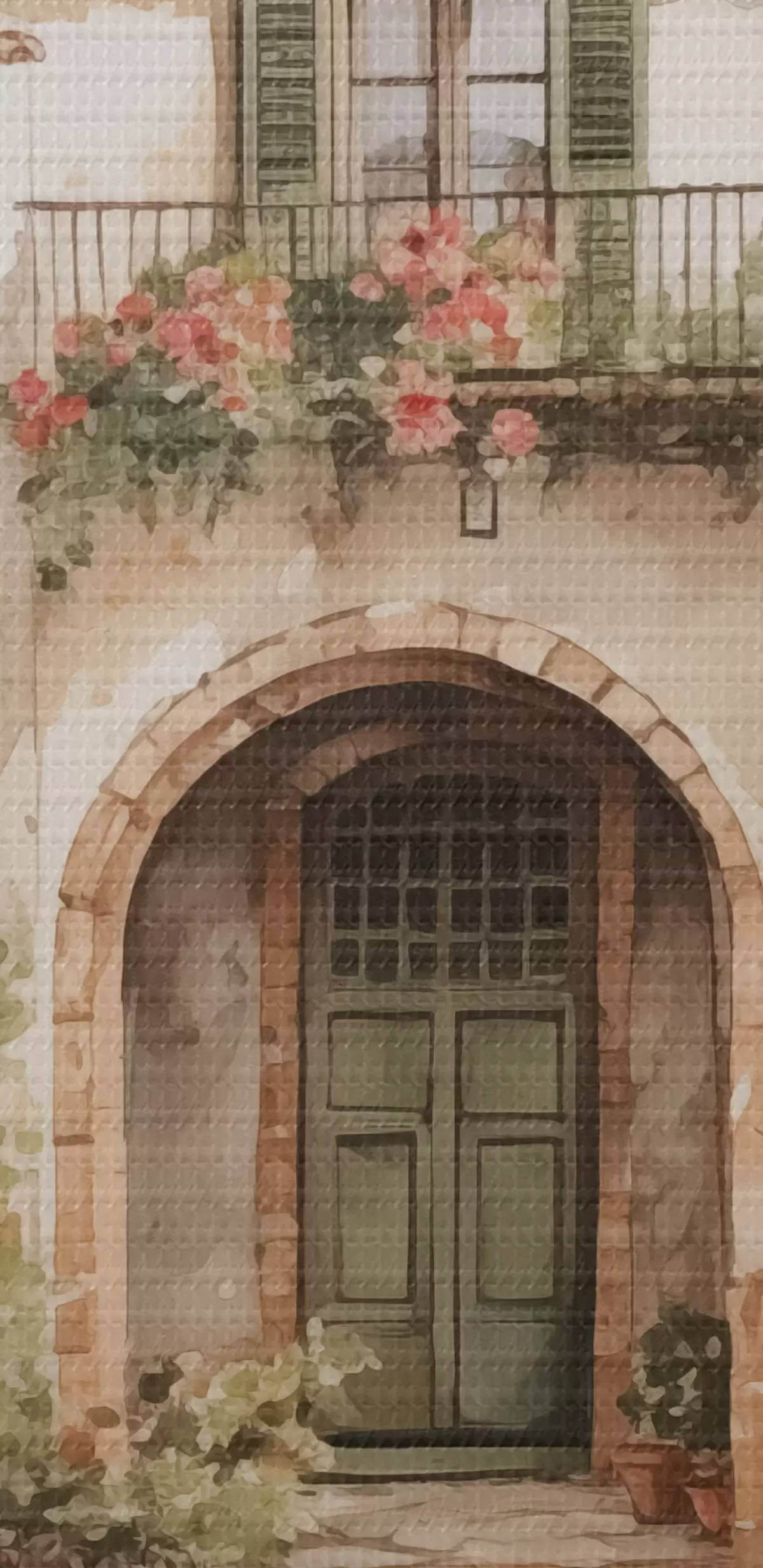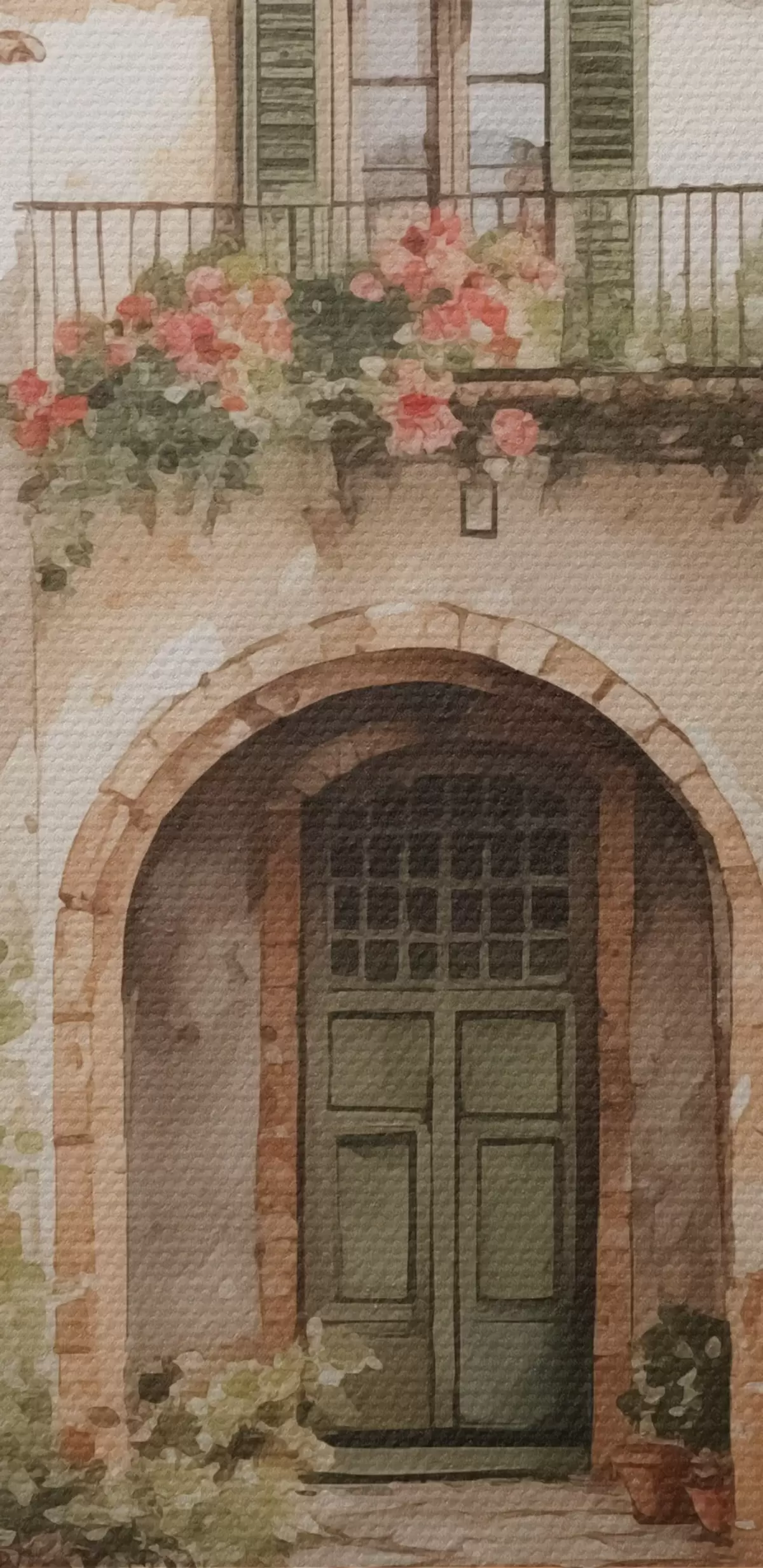Quadri Cortile italiano con fioriere ad imitazione dell'acquerello Nr s42126