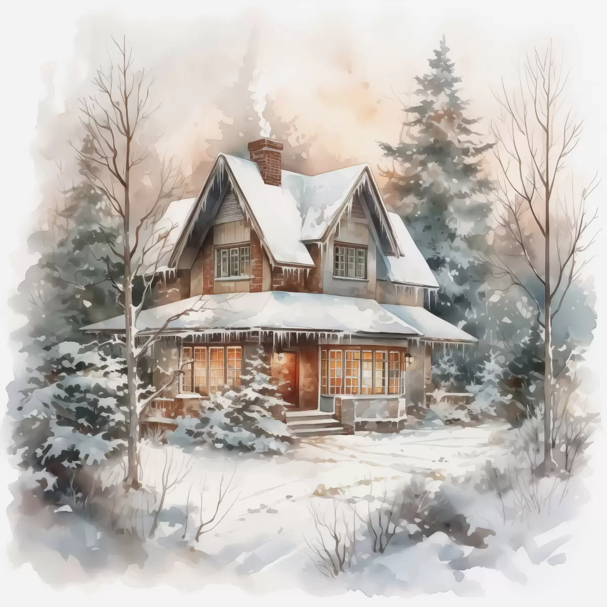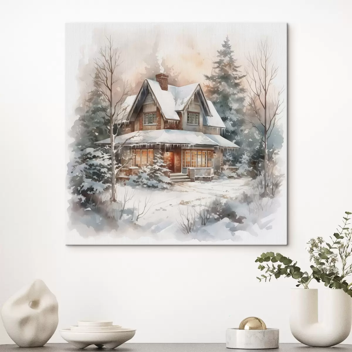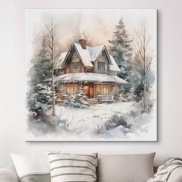 Quadri Casa in un bosco innevato imitazione di acquerello Nr s42137