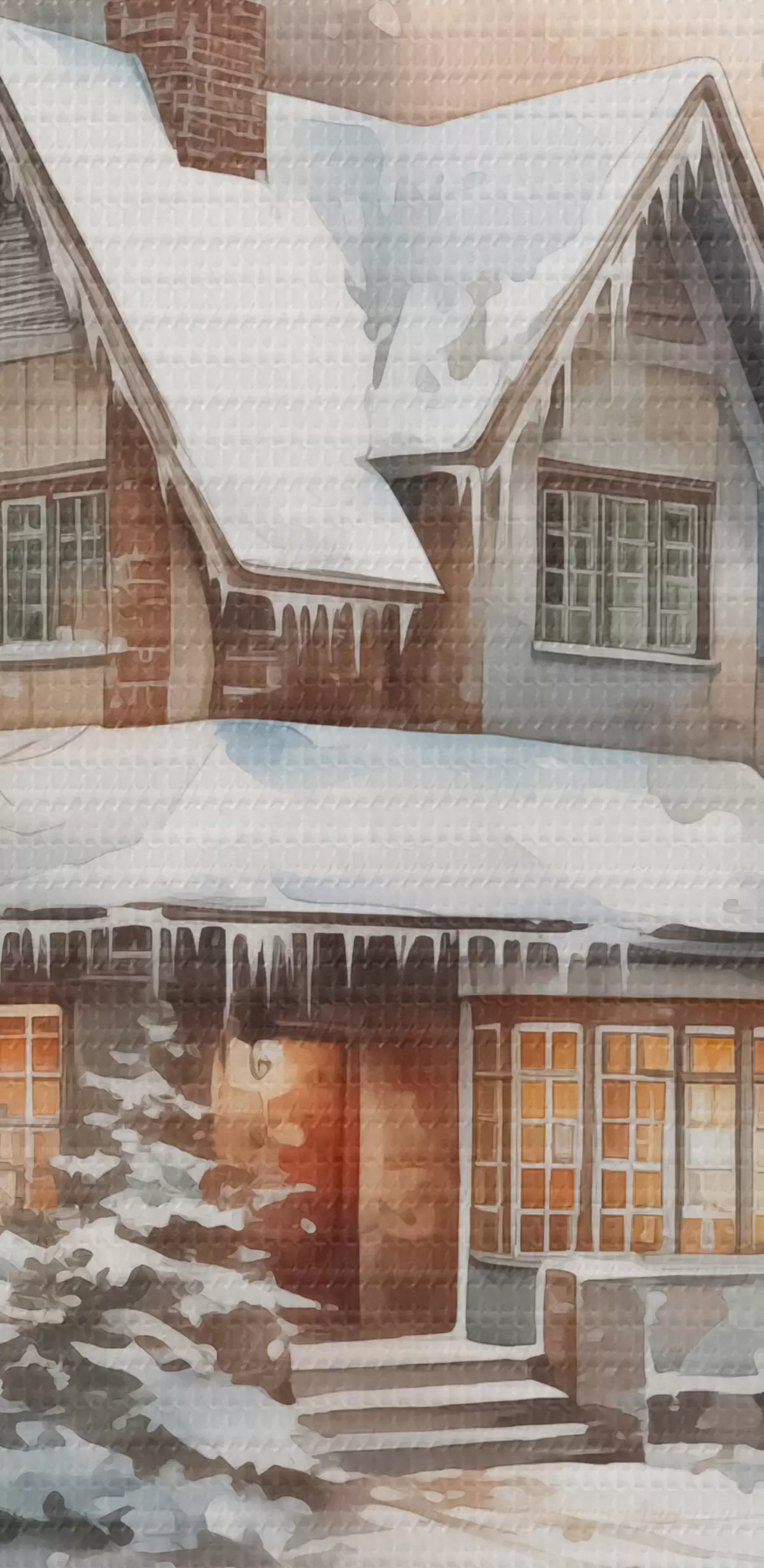 carta da parati Casa in un bosco innevato imitazione di acquerello nr. s42137