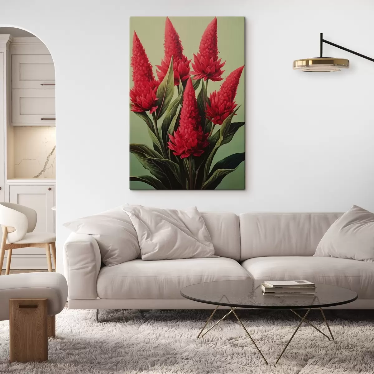 Quadri Fiori rossi su sfondo verde Nr s42166