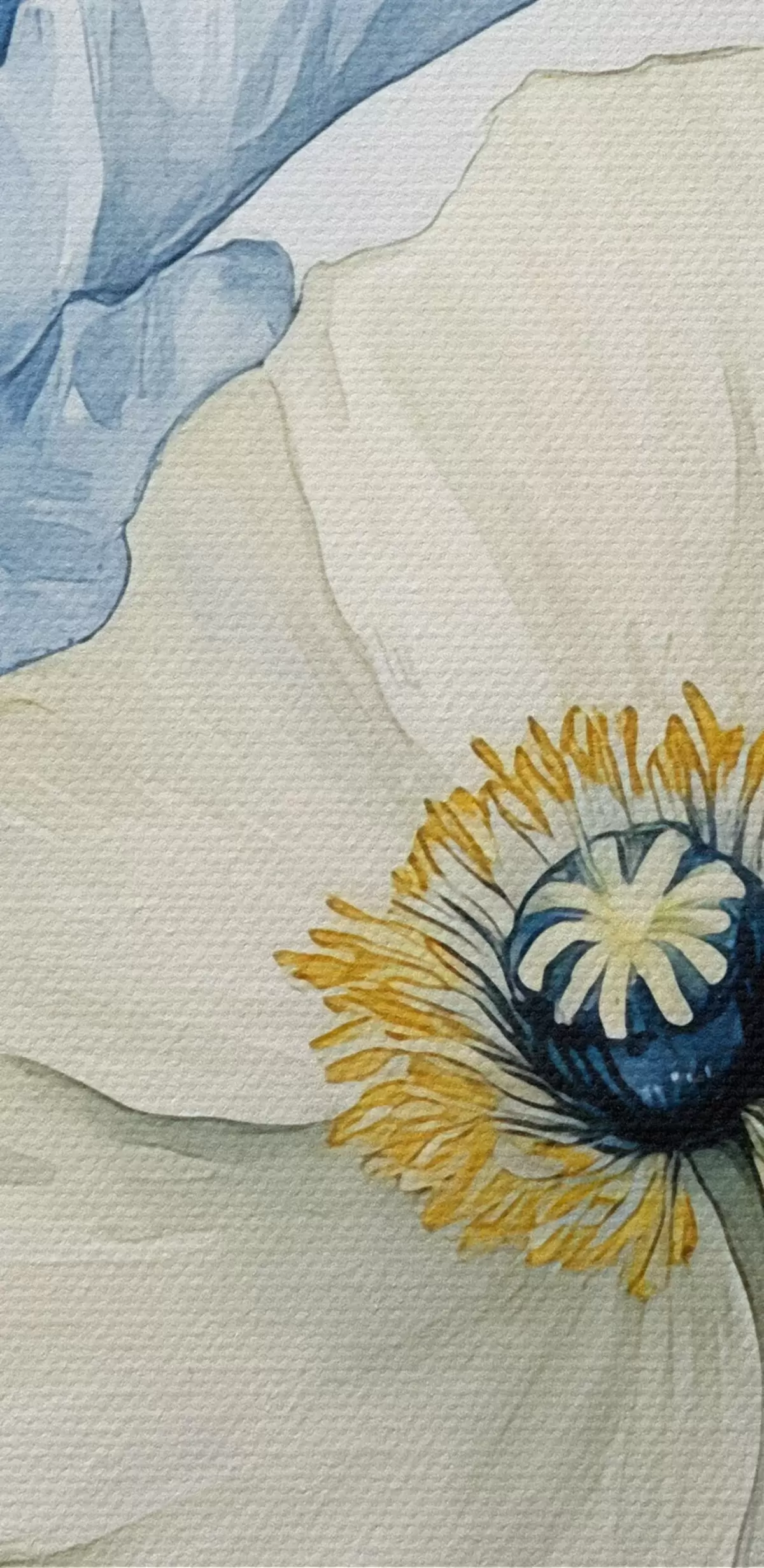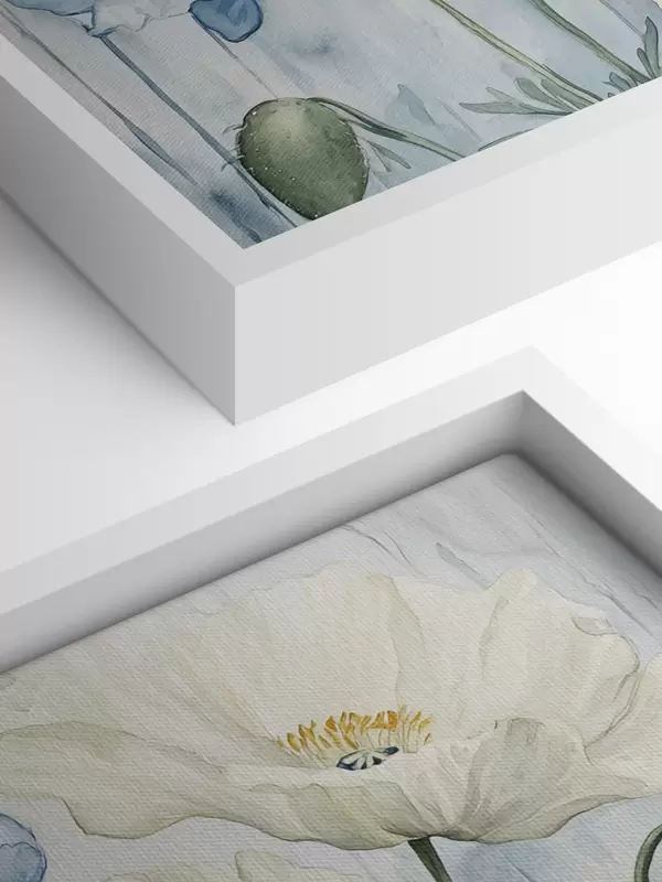 Quadri Papaveri blu e bianchi su sfondo acquerellato Nr s42191