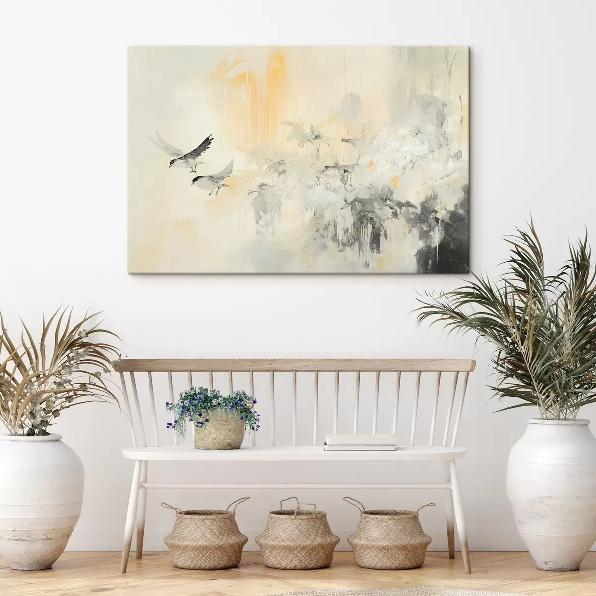 Quadri Astrazione con uccelli, stile acrilico, colori grigio e beige Nr s42206