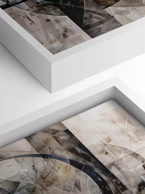 Quadri Composizione geometrica astratta e moderna con forme sovrapposte e stampa nei toni del grigio, del nero e del beige Nr s42212