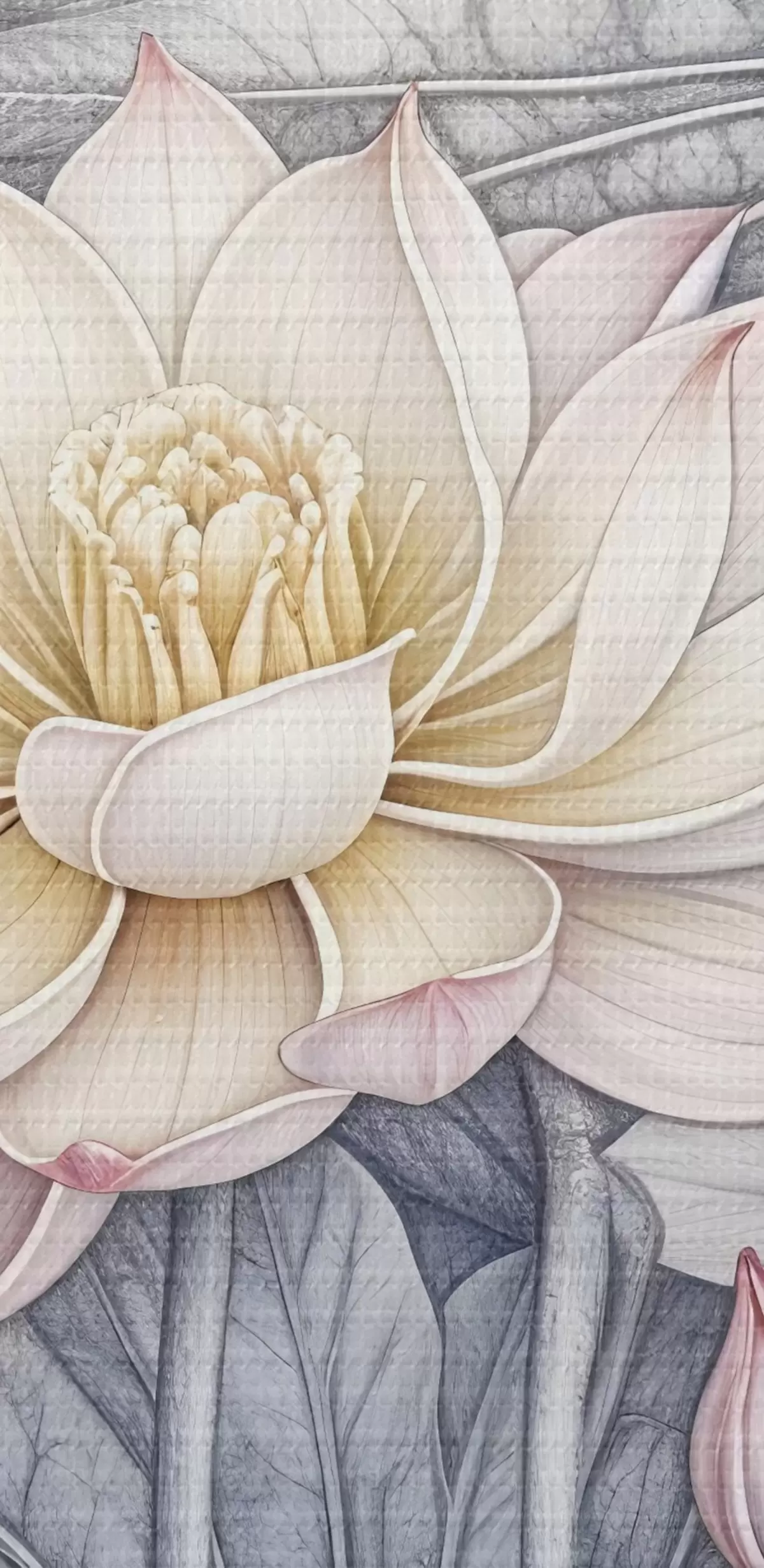 carta da parati Grandi fiori di loto rosa e bianchi con foglie e steli verdi su sfondo chiaro con petali e centri dettagliati nr. s42221
