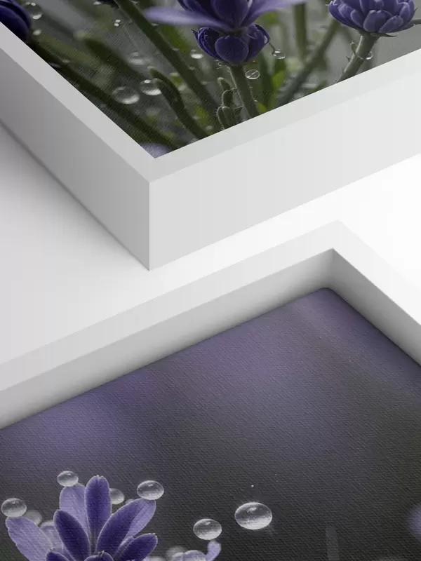 Quadri Fiori di lavanda viola con gocce d'acqua sui petali, su sfondo sfocato Nr s42229