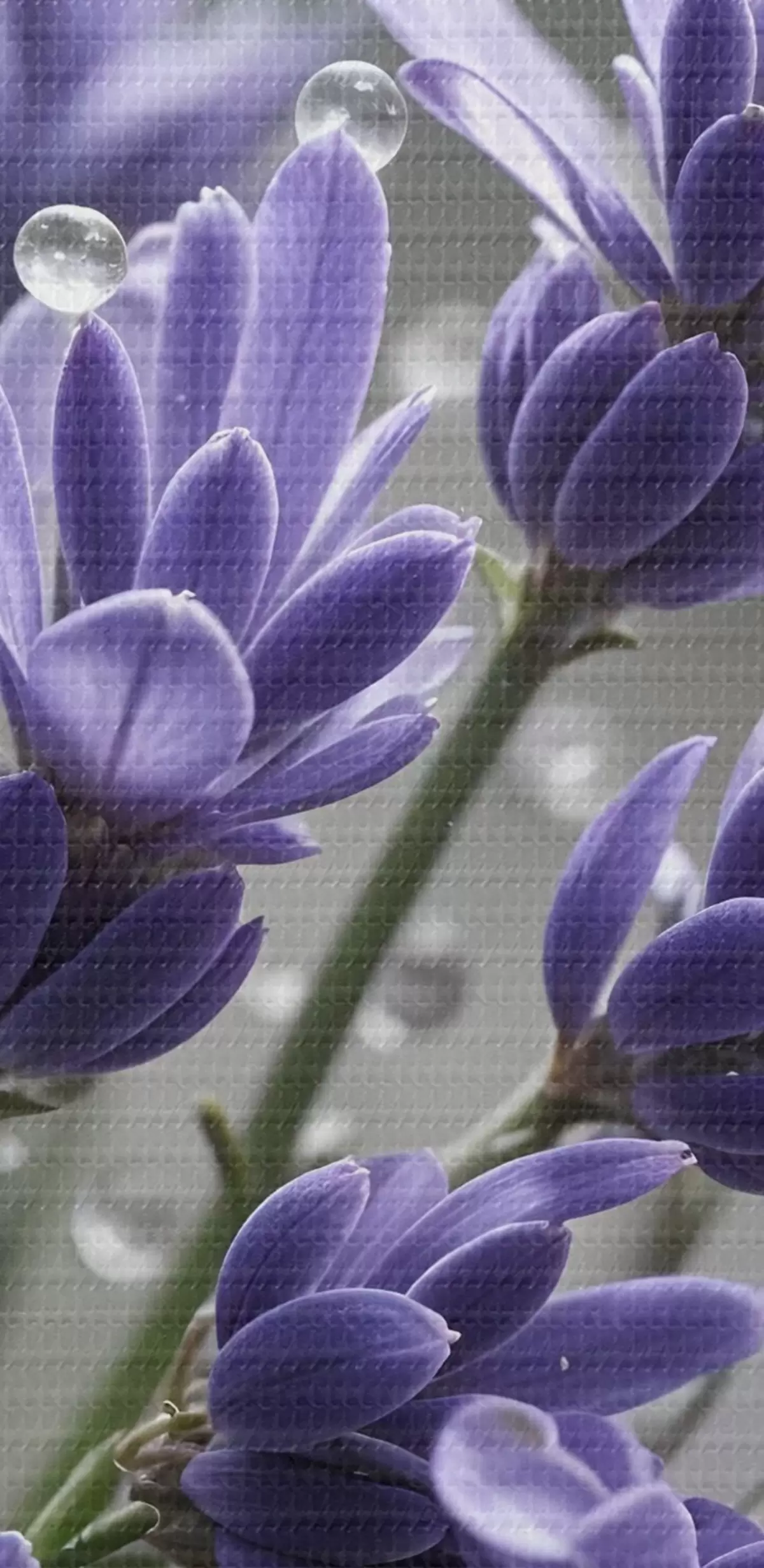 carta da parati Fiori di lavanda viola con gocce d'acqua sui petali, su sfondo sfocato nr. s42229
