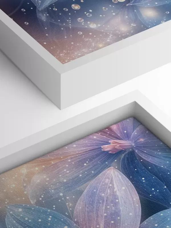 Quadri Fiori vibranti ed eterei con morbidi petali pastello su un sognante sfondo stellato Nr s42231