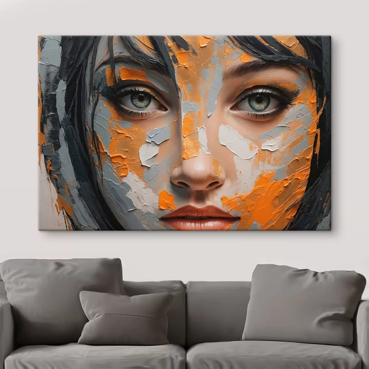 Quadri Volto di ragazza con vernice bianca e gialla Nr s42259