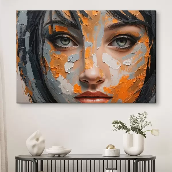 Quadri Volto di ragazza con vernice bianca e gialla Nr s42259