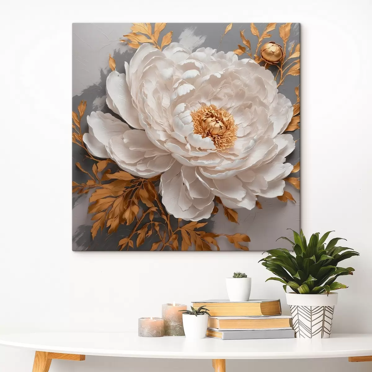 Quadri Peonia bianca su sfondo grigio Nr s42260