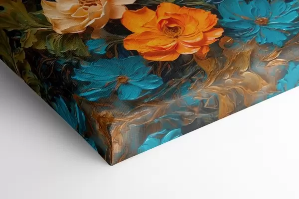 Quadri Vari fiori su sfondo blu astratto in stile pittura ad olio Nr s42269