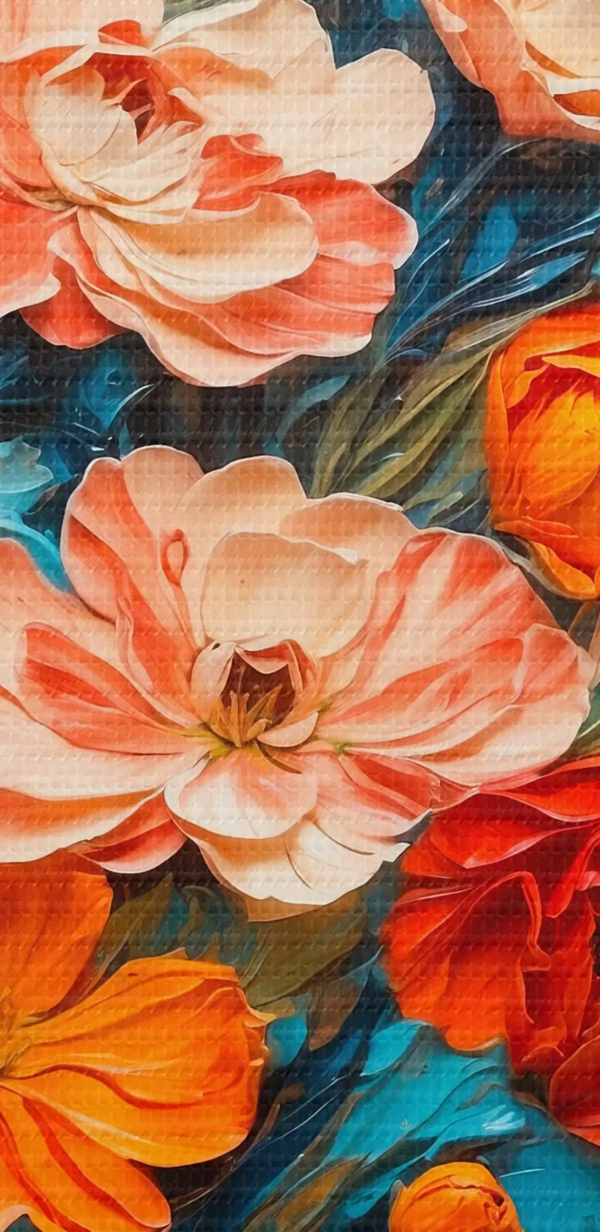 carta da parati Vari fiori su sfondo blu astratto in stile pittura ad olio nr. s42269