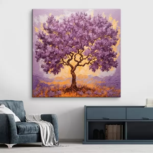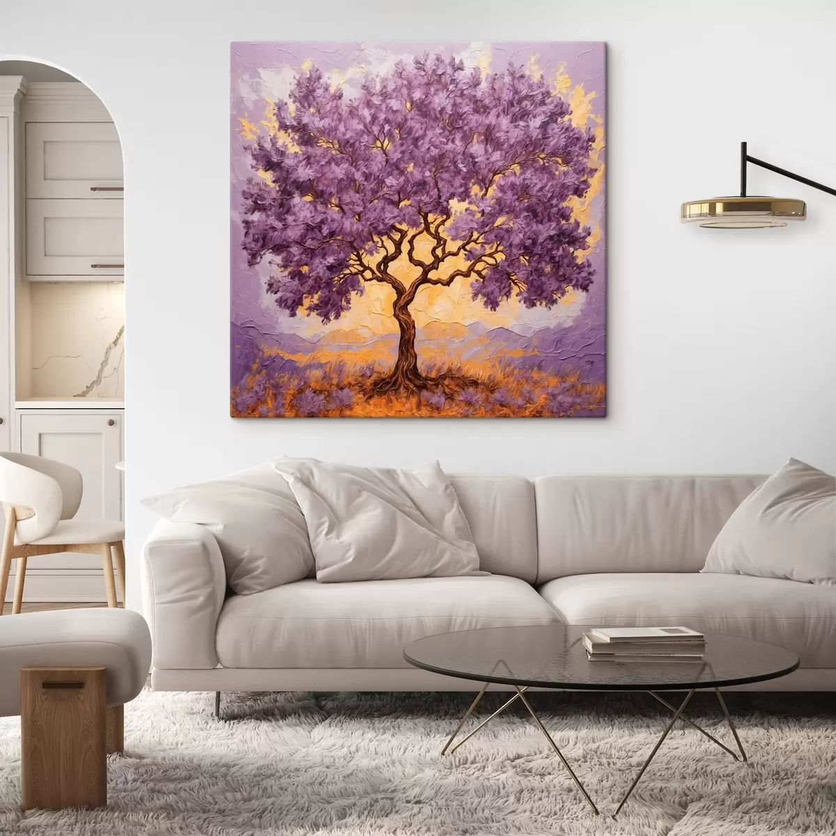 Quadri Albero viola su sfondo giallo-filotico Nr s42272