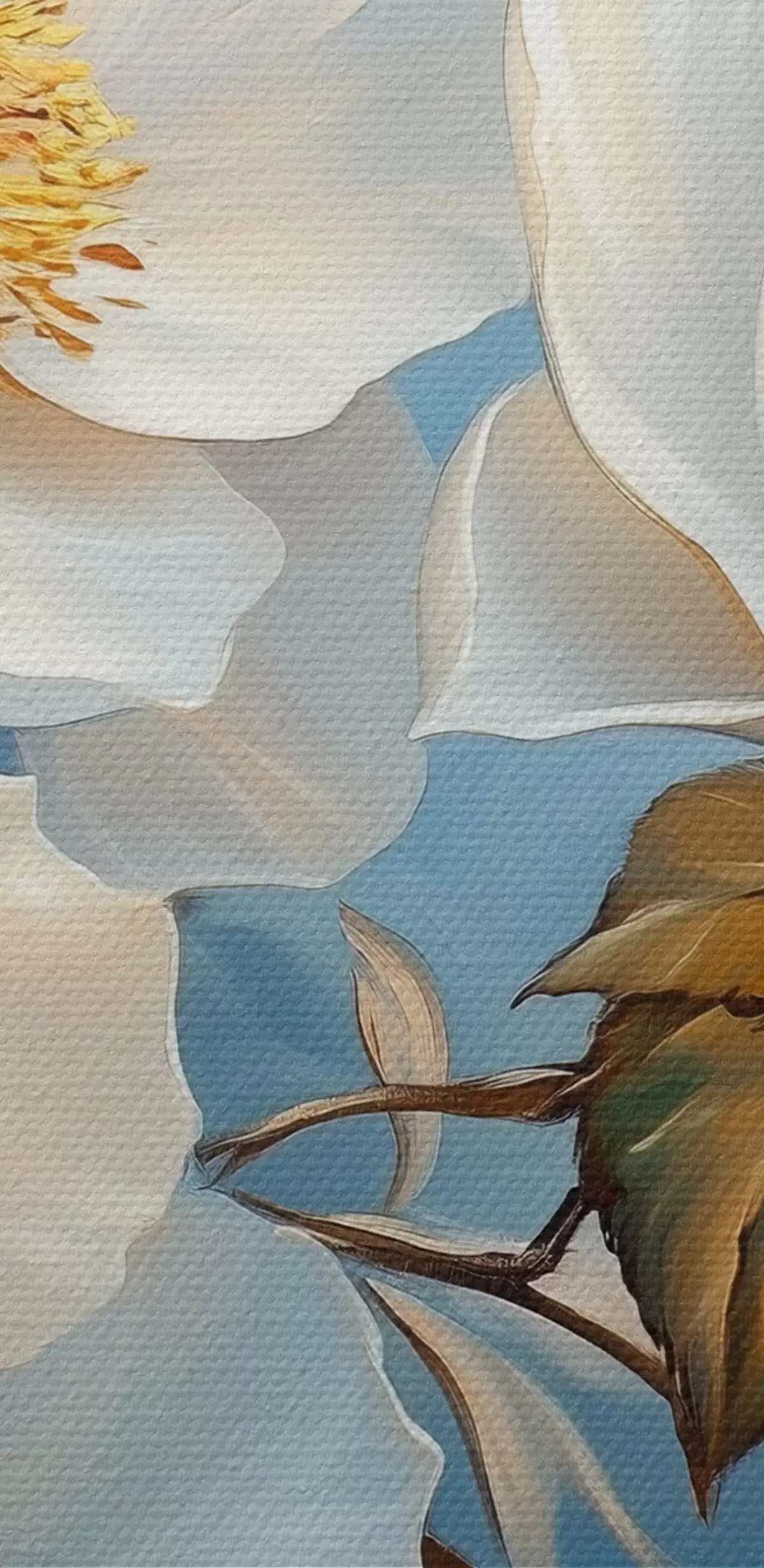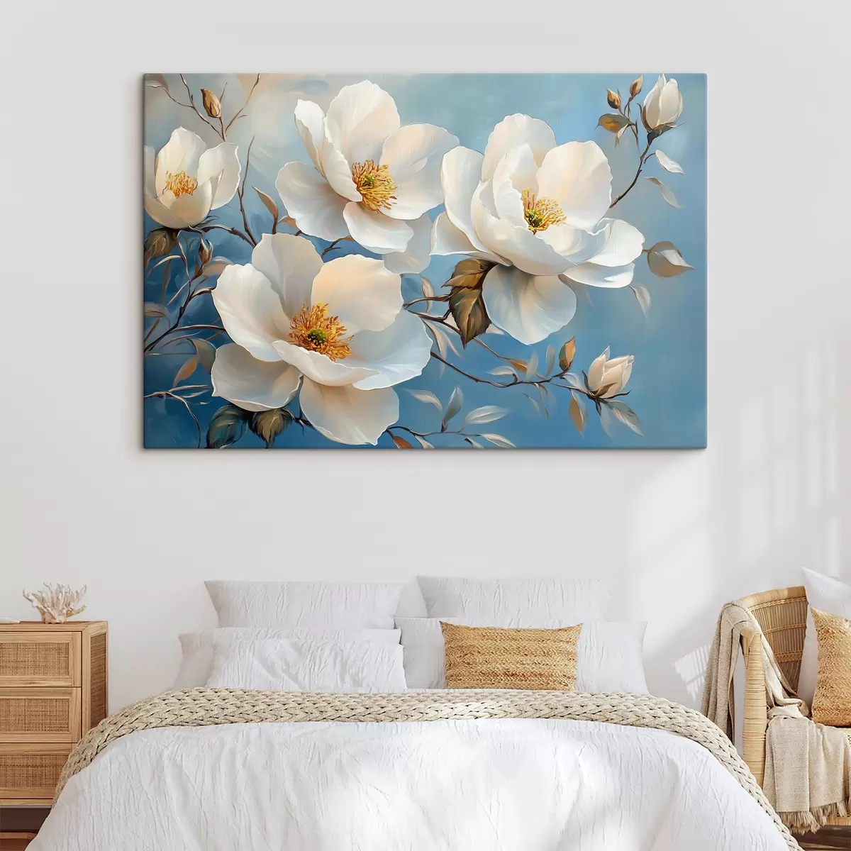 Quadri Grandi fiori bianchi su sfondo blu Nr s42321