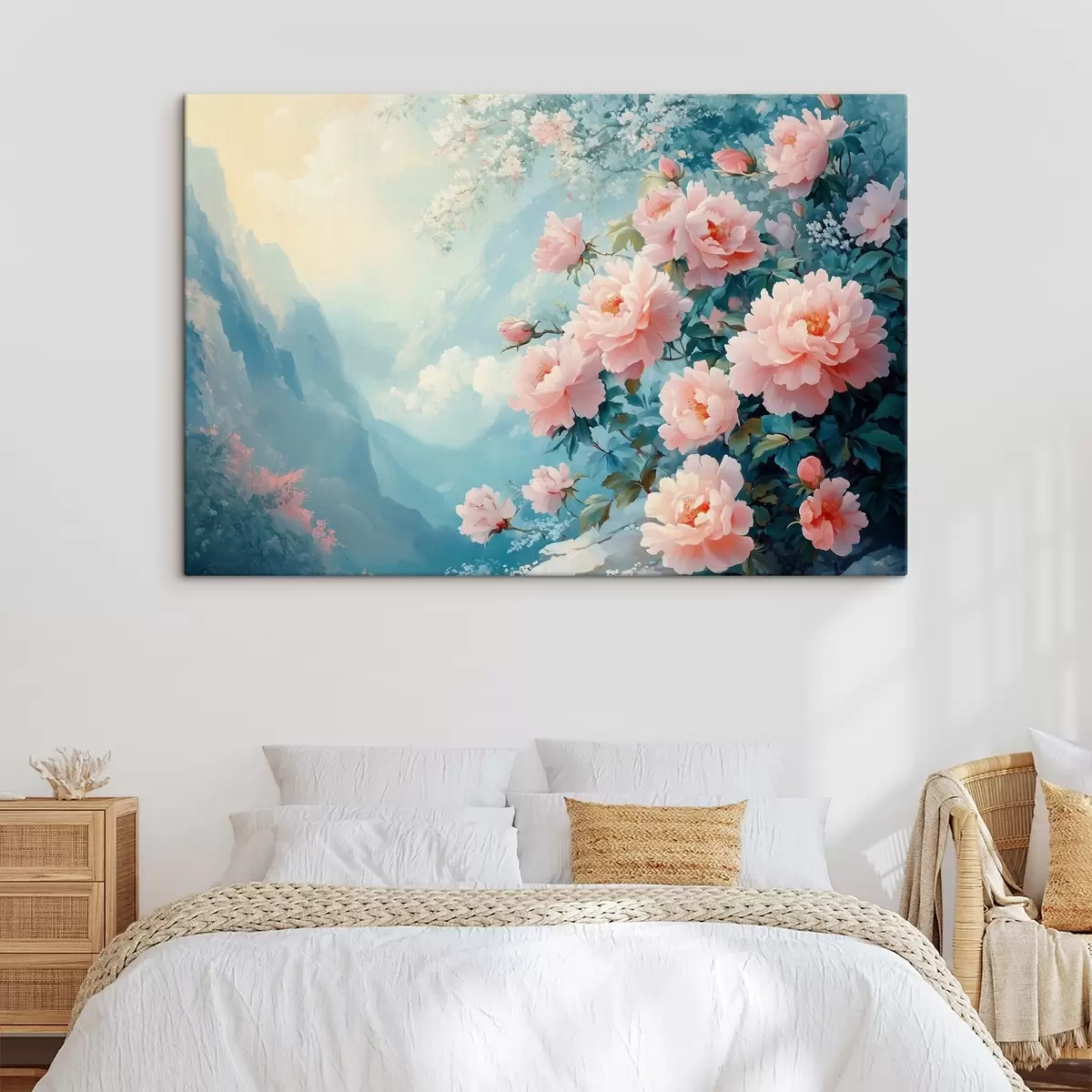 Quadri Montagne blu e fiori in primo piano Nr s42324