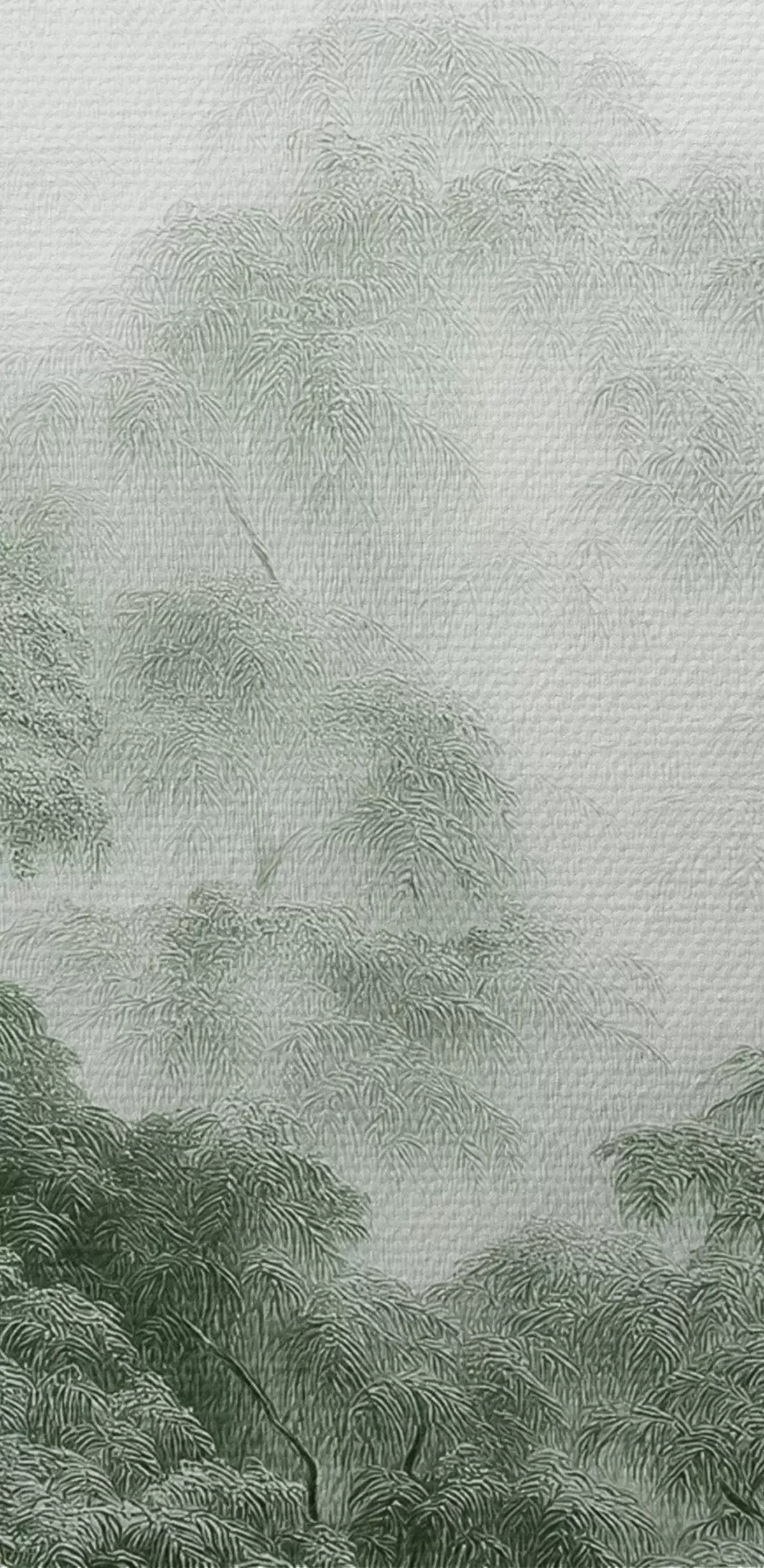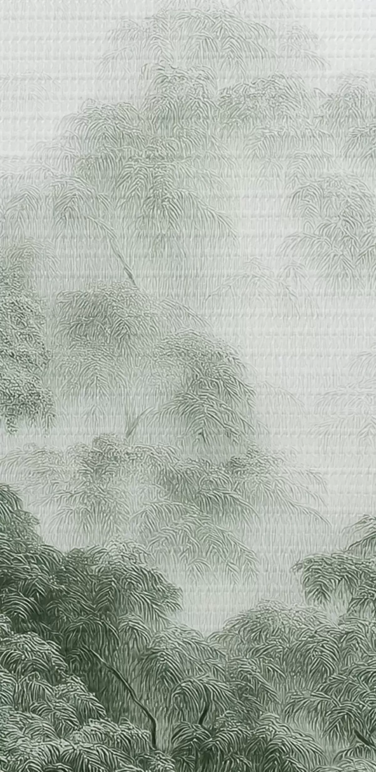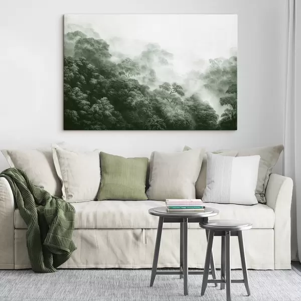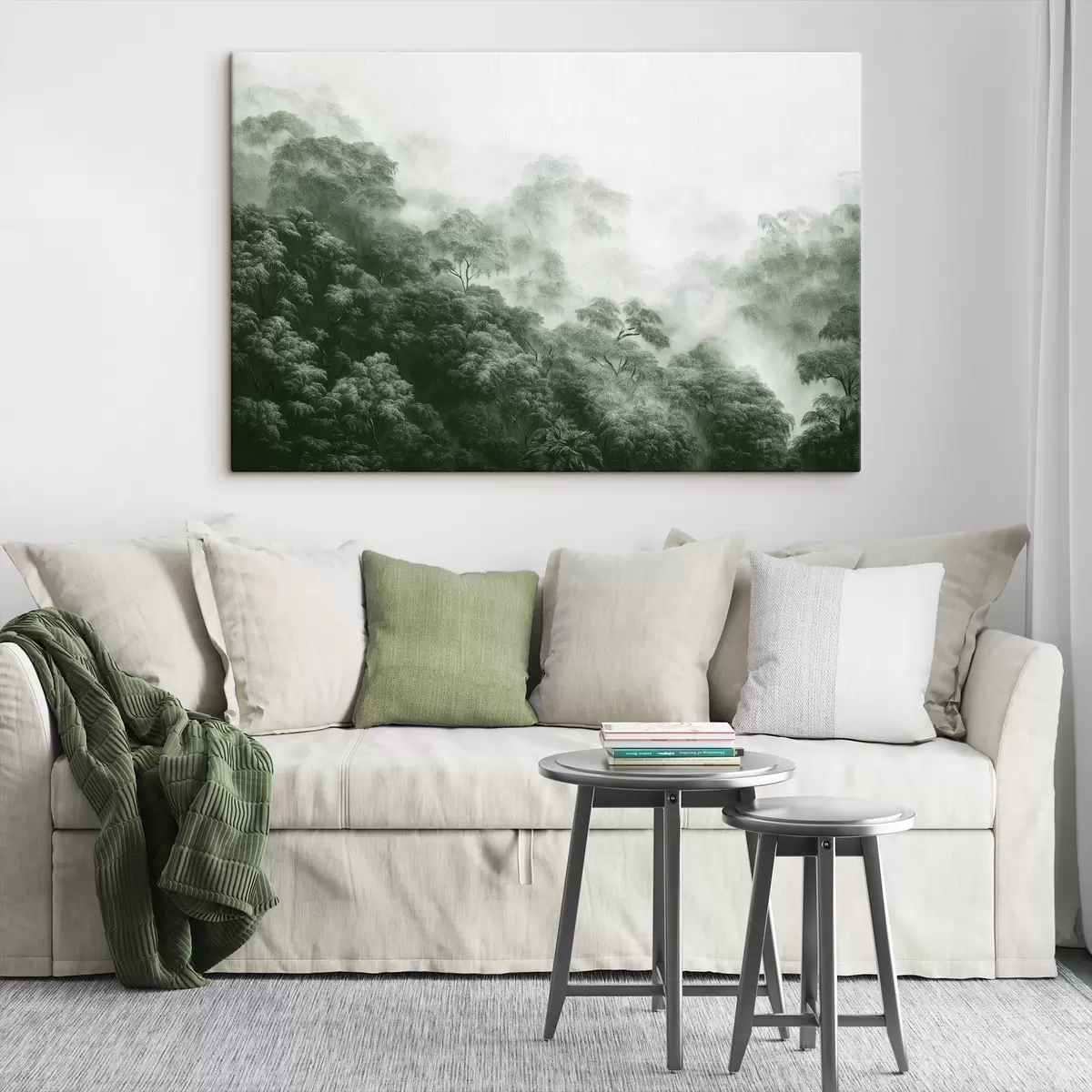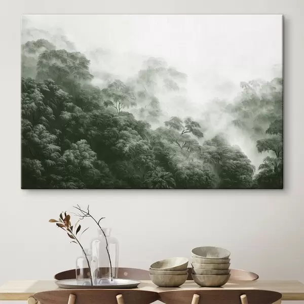 Quadri Foresta tropicale nella nebbia, palme, colori verdi Nr s42371