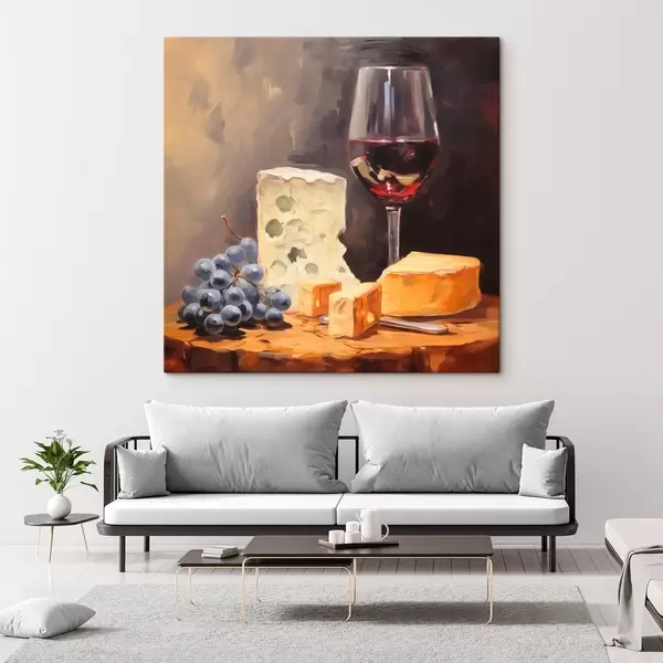 Quadri Bicchiere di vino rosso e imitazione di formaggi Nr s42415