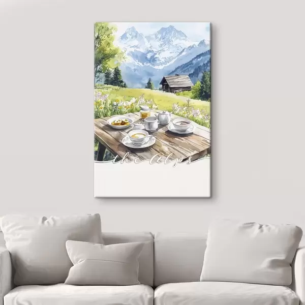 Quadri Alpi, bel paesaggio montano, natura estiva, casa di legno Nr s42424