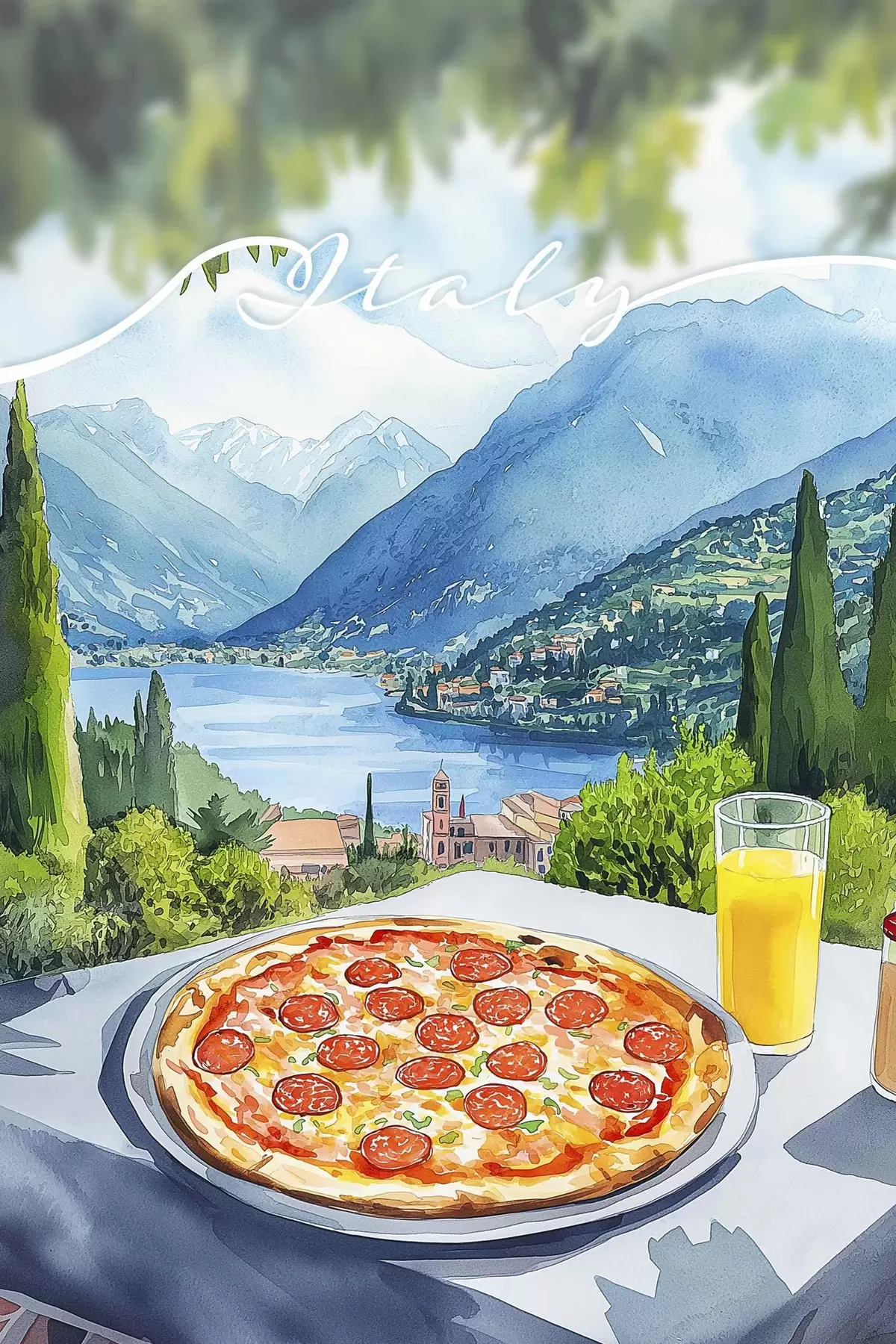 Quadri Stile acquerello, Italia, pizza, città vecchia, paesaggio montano Nr s42435