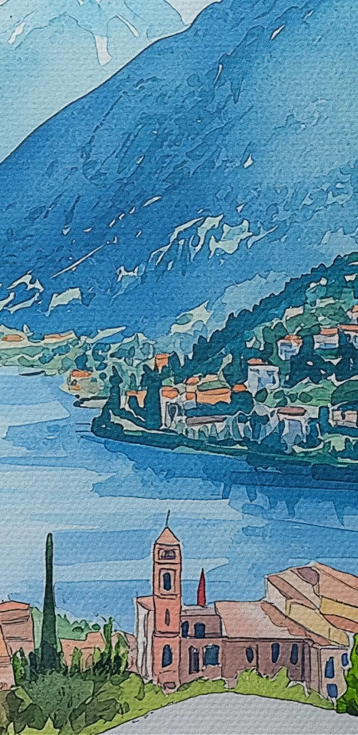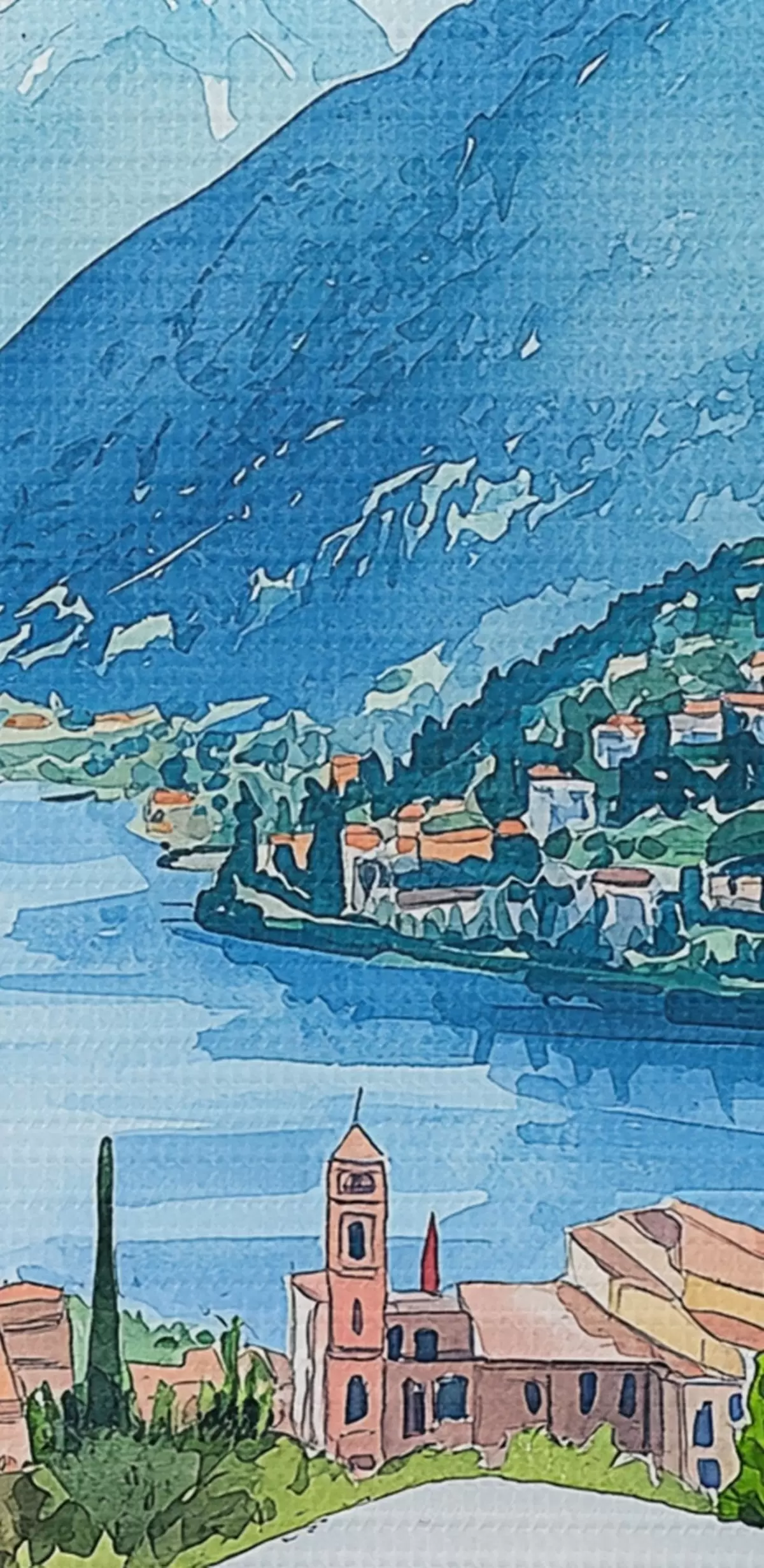 carta da parati Stile acquerello, Italia, pizza, città vecchia, paesaggio montano nr. s42435