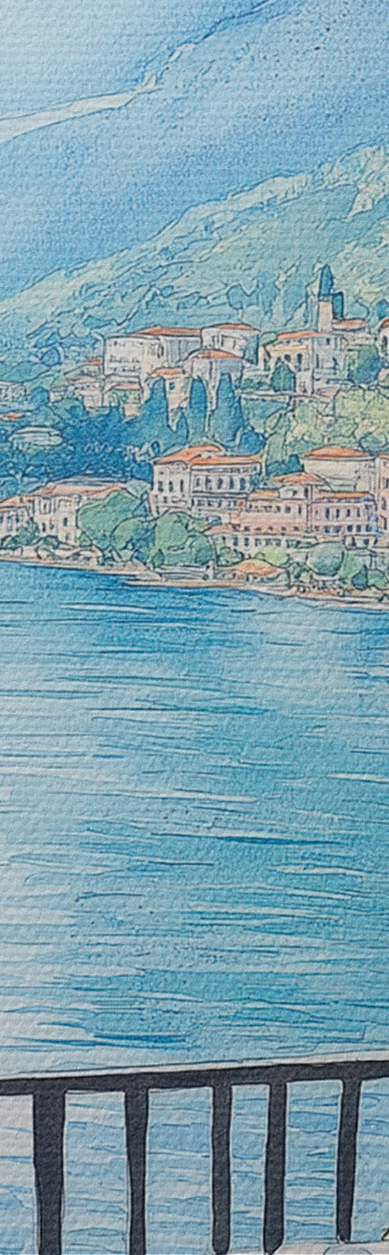 Quadri Brunch in Italia, stile acquerello, pizza margarita, lago, natura estiva Nr s42436
