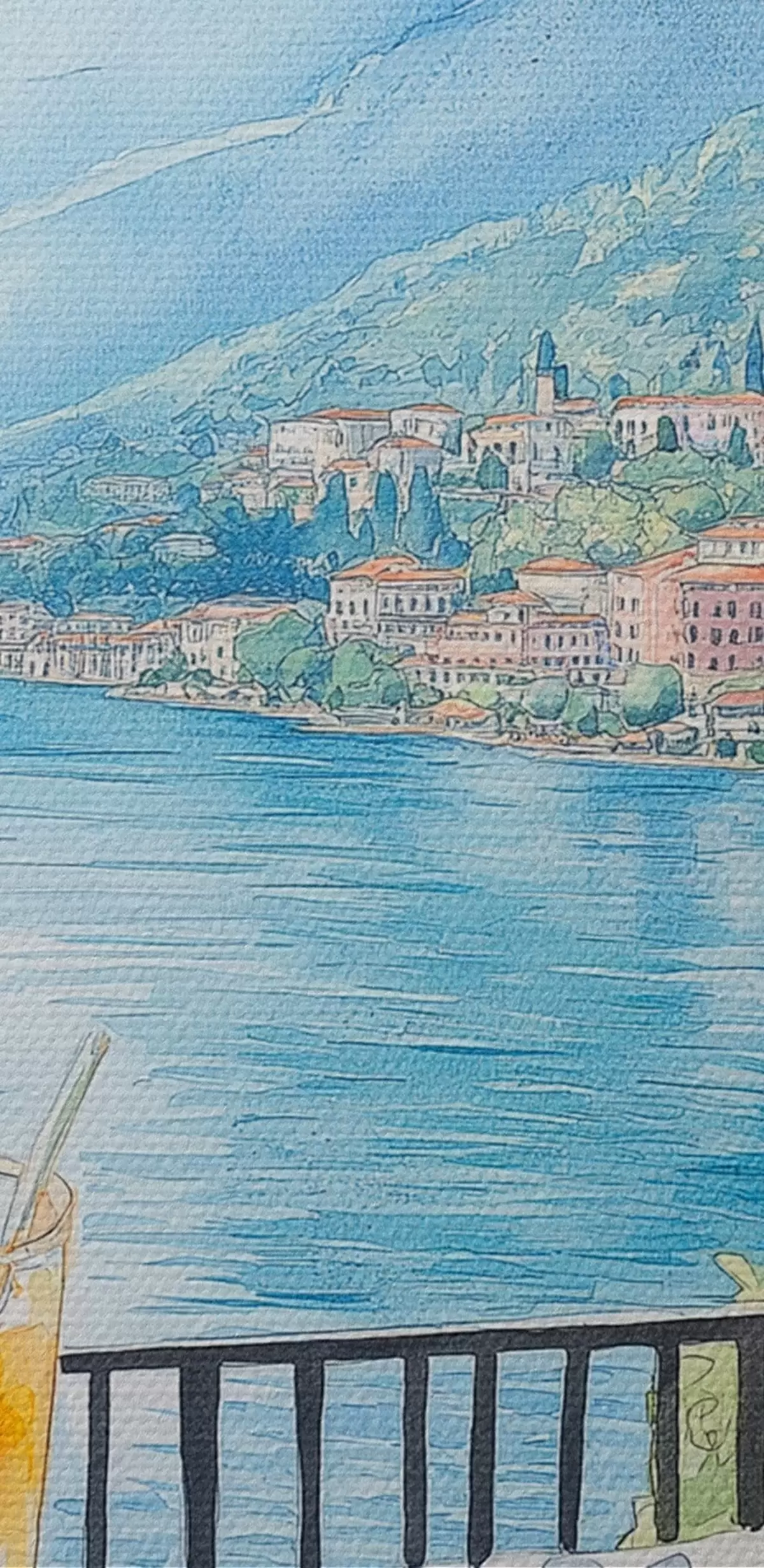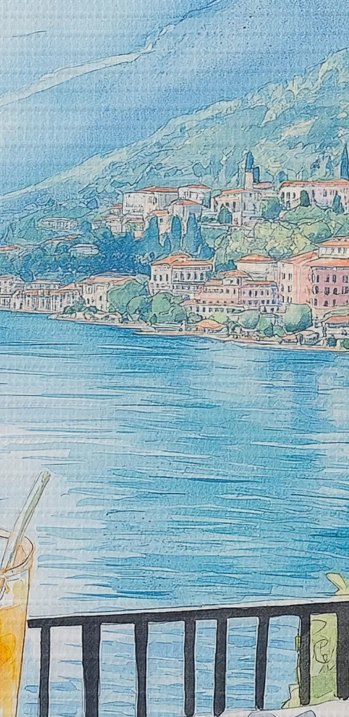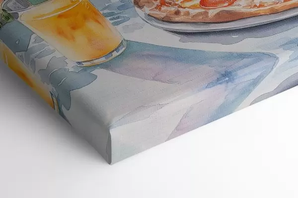 Quadri Brunch in Italia, stile acquerello, pizza margarita, lago, natura estiva Nr s42436