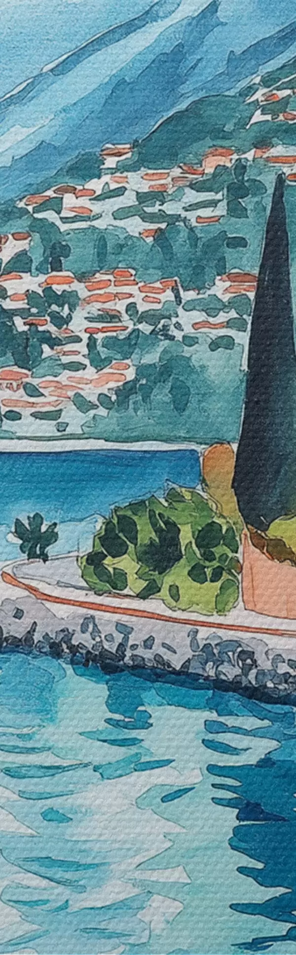 Quadri Lago di Como, Italia, stile acquerello, pizza, cocktail, città vecchia, montagne Nr s42437