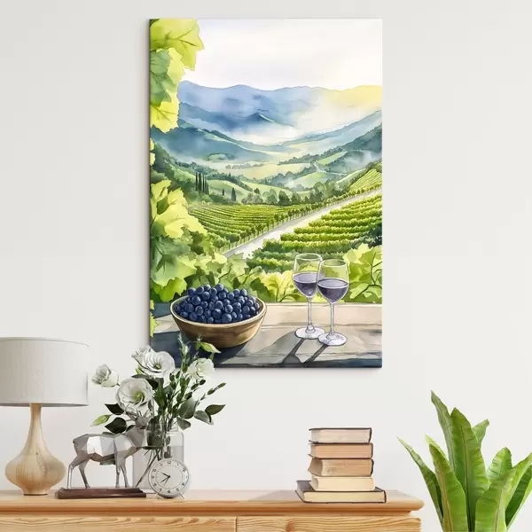 Quadri Cantieri Gpape, paesaggi in stile acquerello, bicchieri di vino Nr s42444