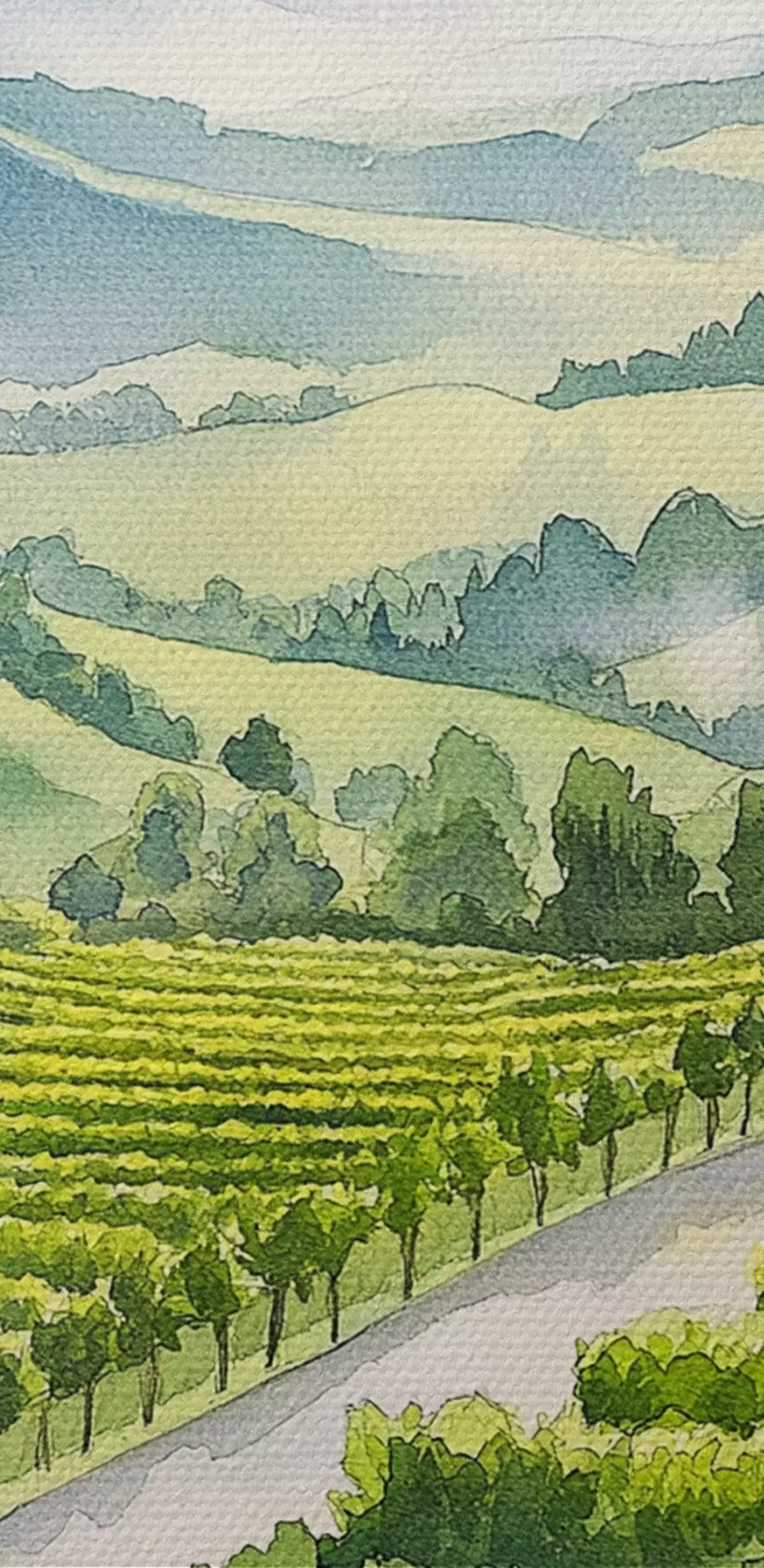 carta da parati Cantieri Gpape, paesaggi in stile acquerello, bicchieri di vino nr. s42444