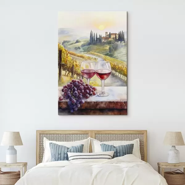 Quadri Tramonto in Toscana, cantina, architettura antica, stile acquerello, Italia Nr s42446