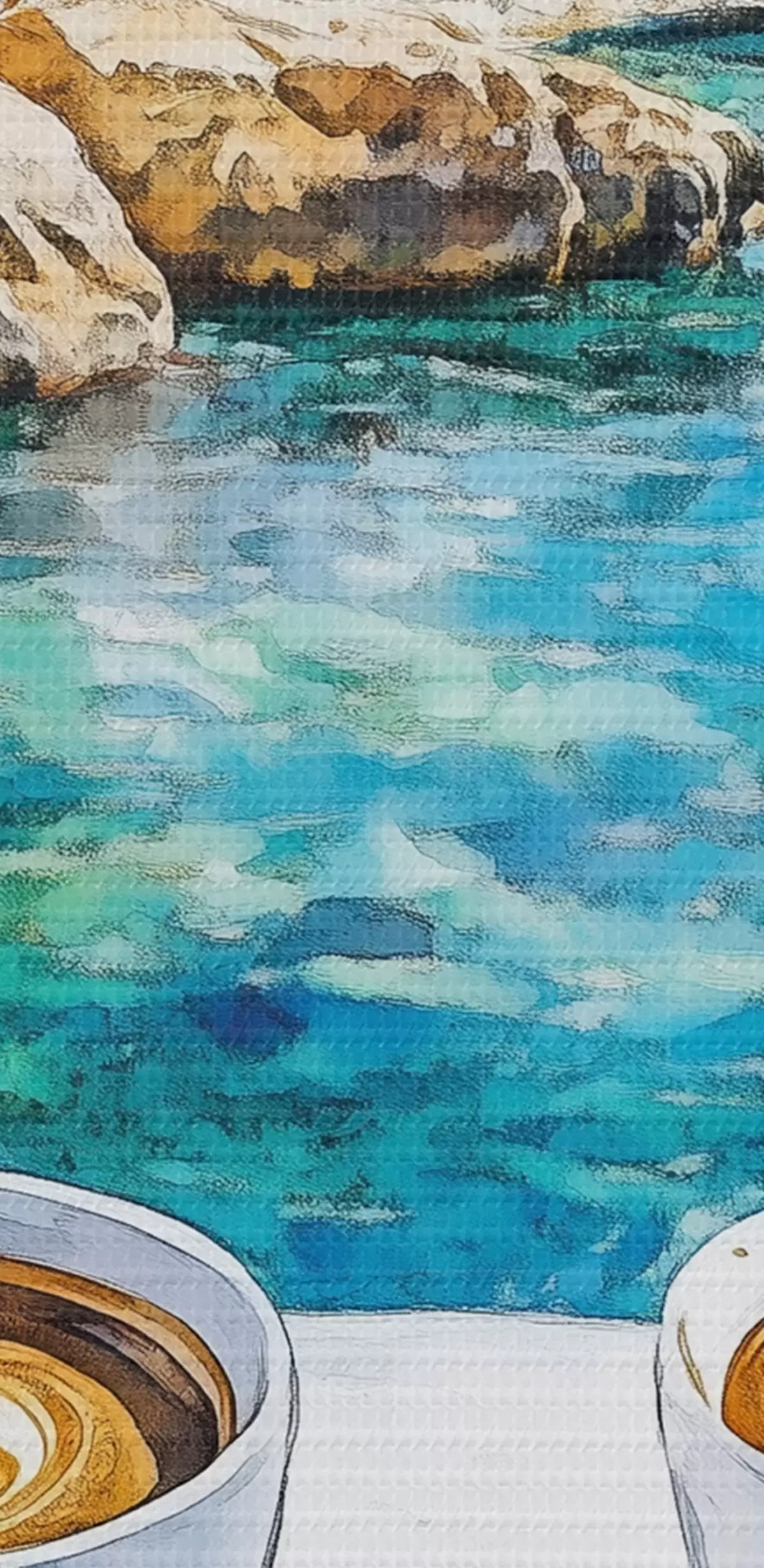 carta da parati Grecia estetica, tazze di caffè, mare blu, città vecchia, viaggio nr. s42447