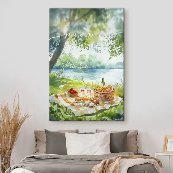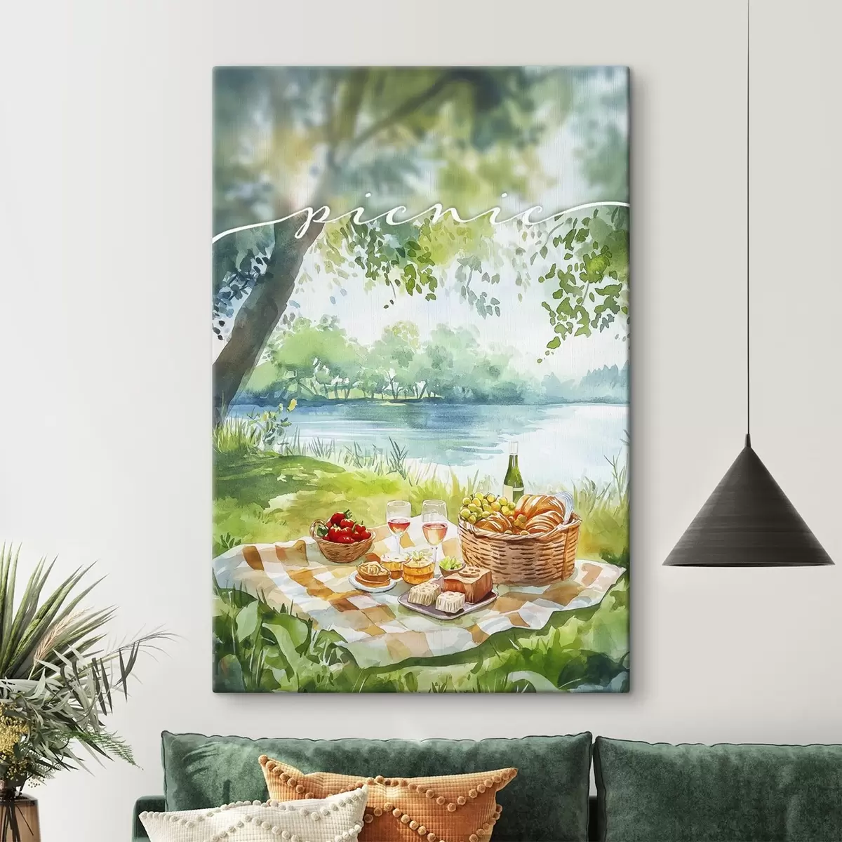 Quadri Estetica del picnic, natura estiva, lago, romantico, stile acquerello Nr s42450