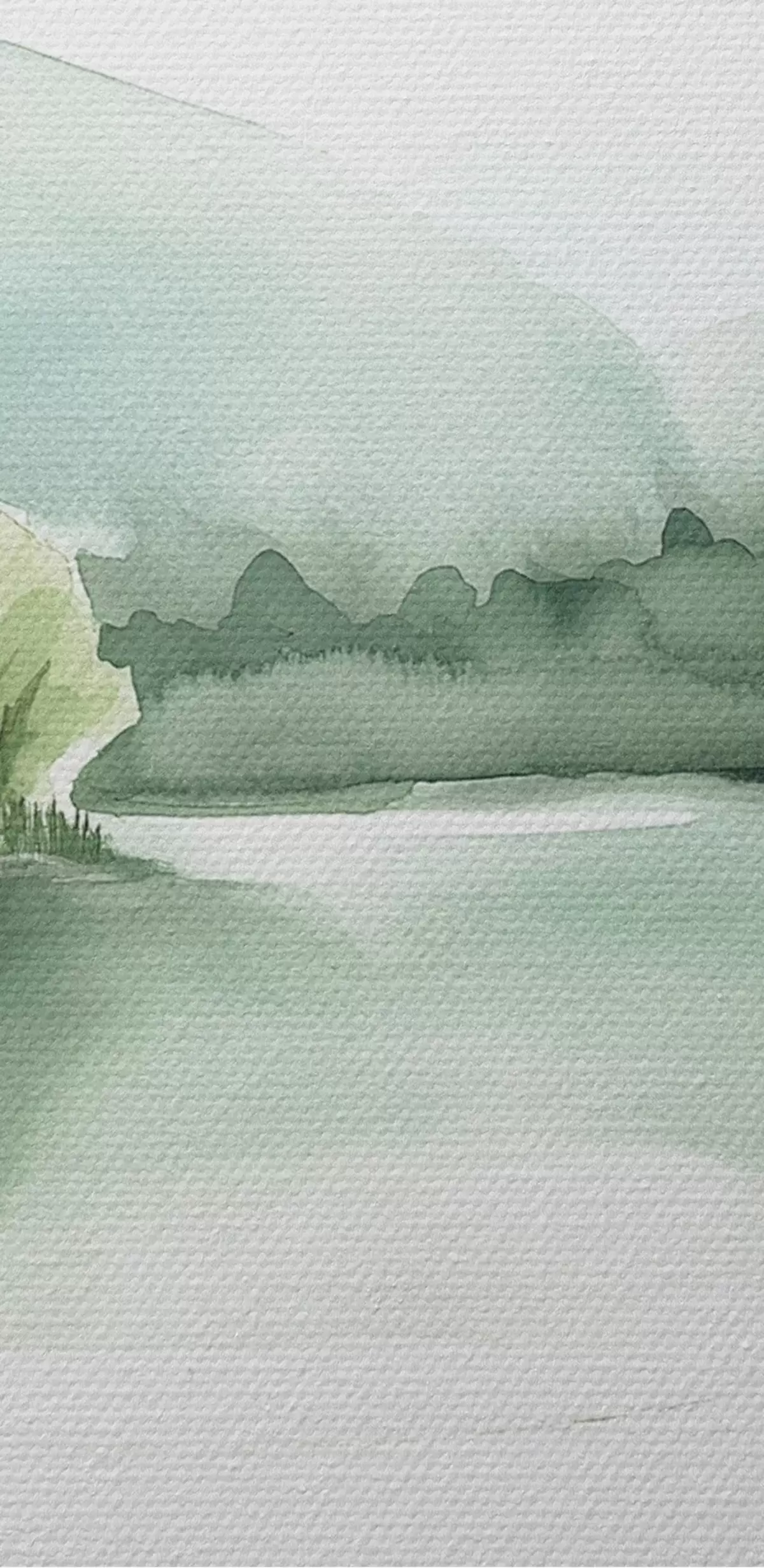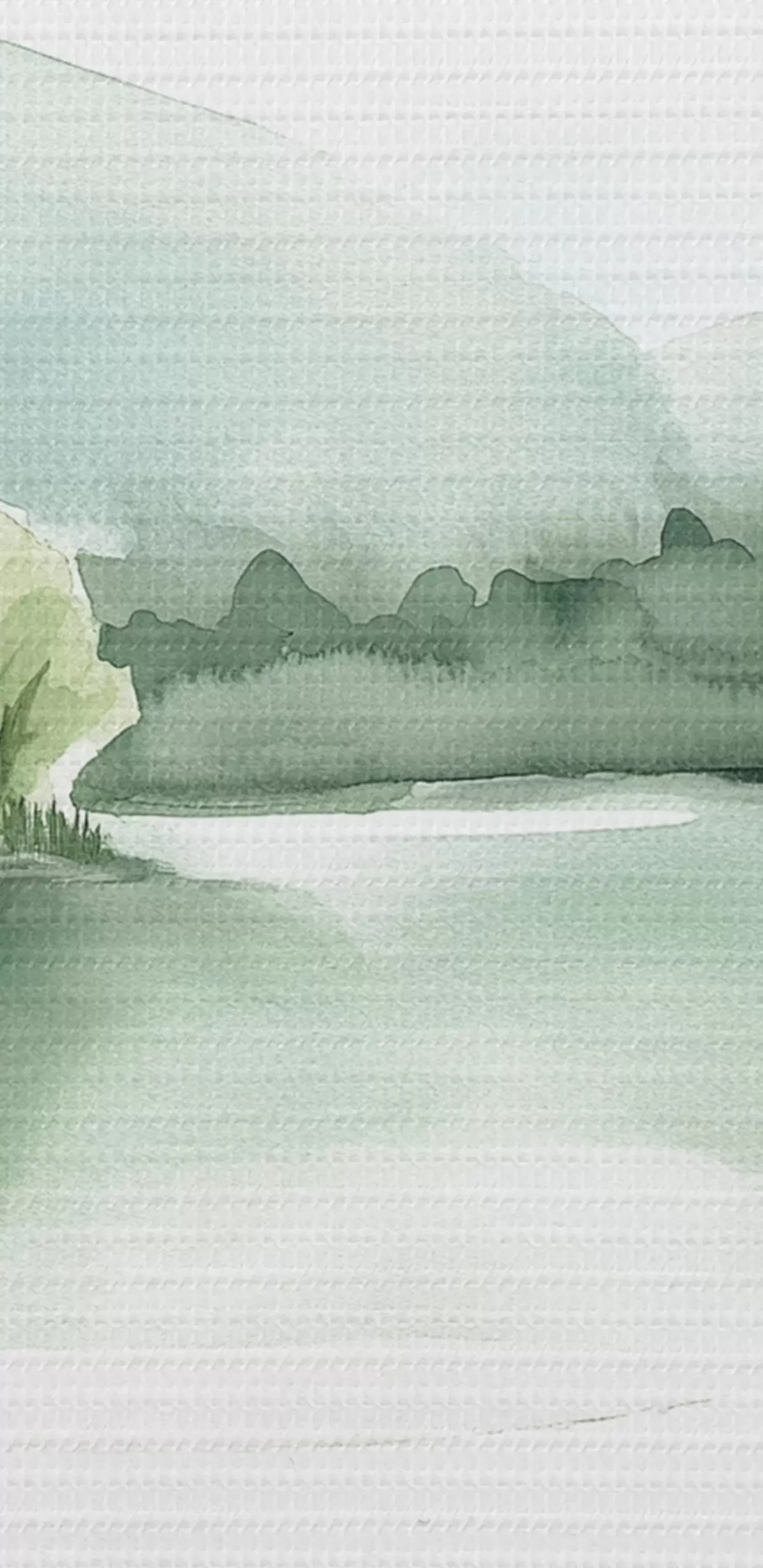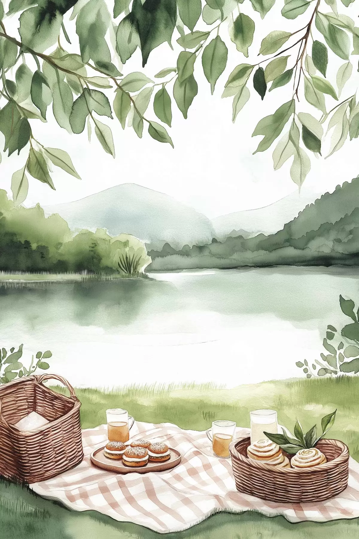 carta da parati Picnic estivo in stile acquerello, rustico, lago, verde, cesti di cibo  nr. s42452