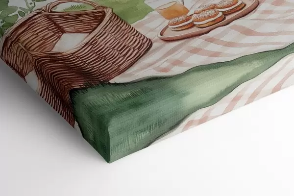 Quadri Picnic estivo in stile acquerello, rustico, lago, verde, cesti di cibo Nr s42452