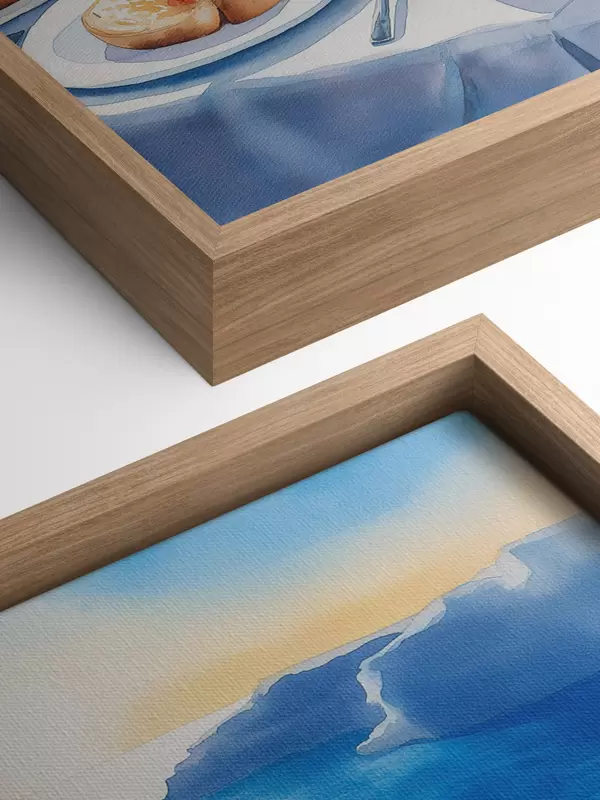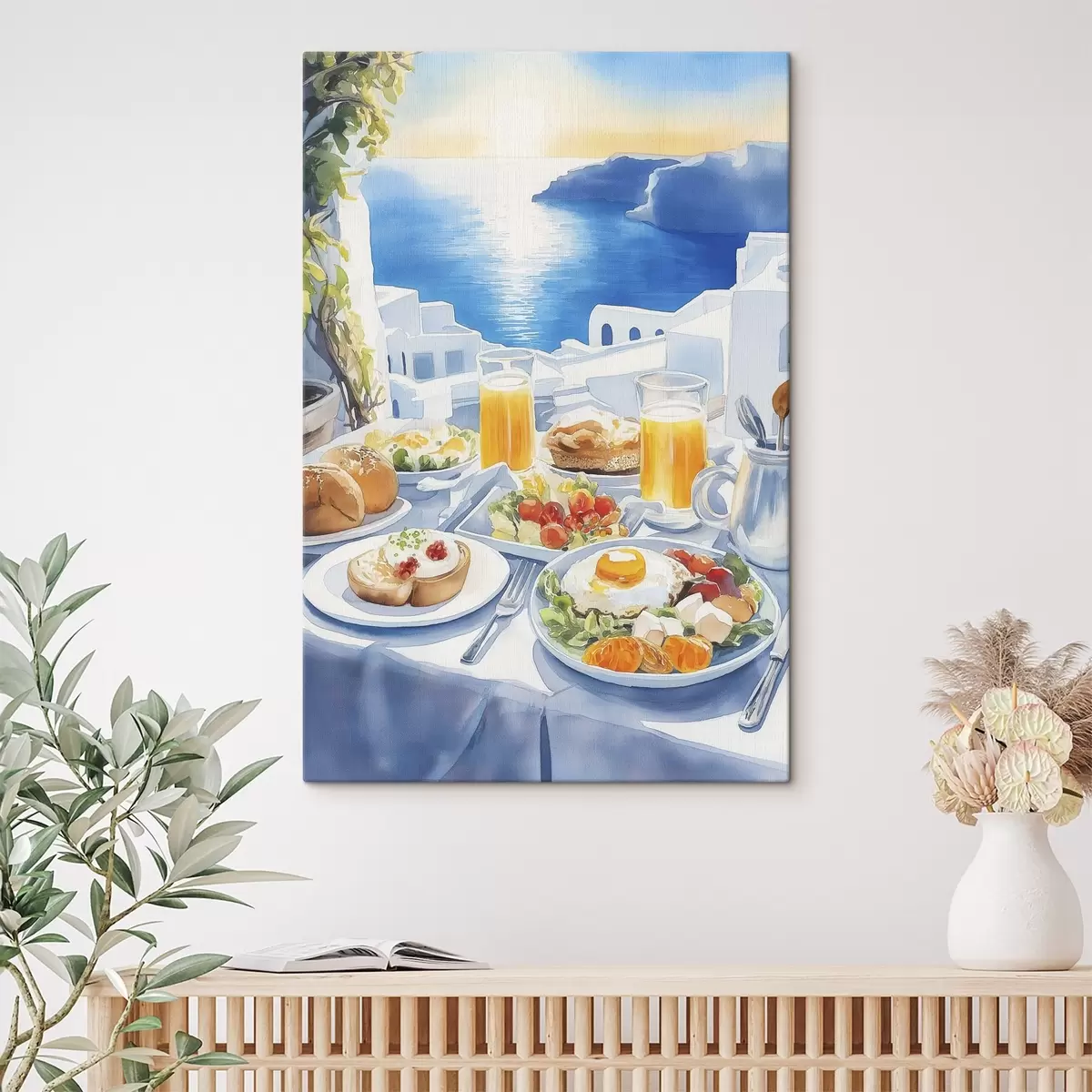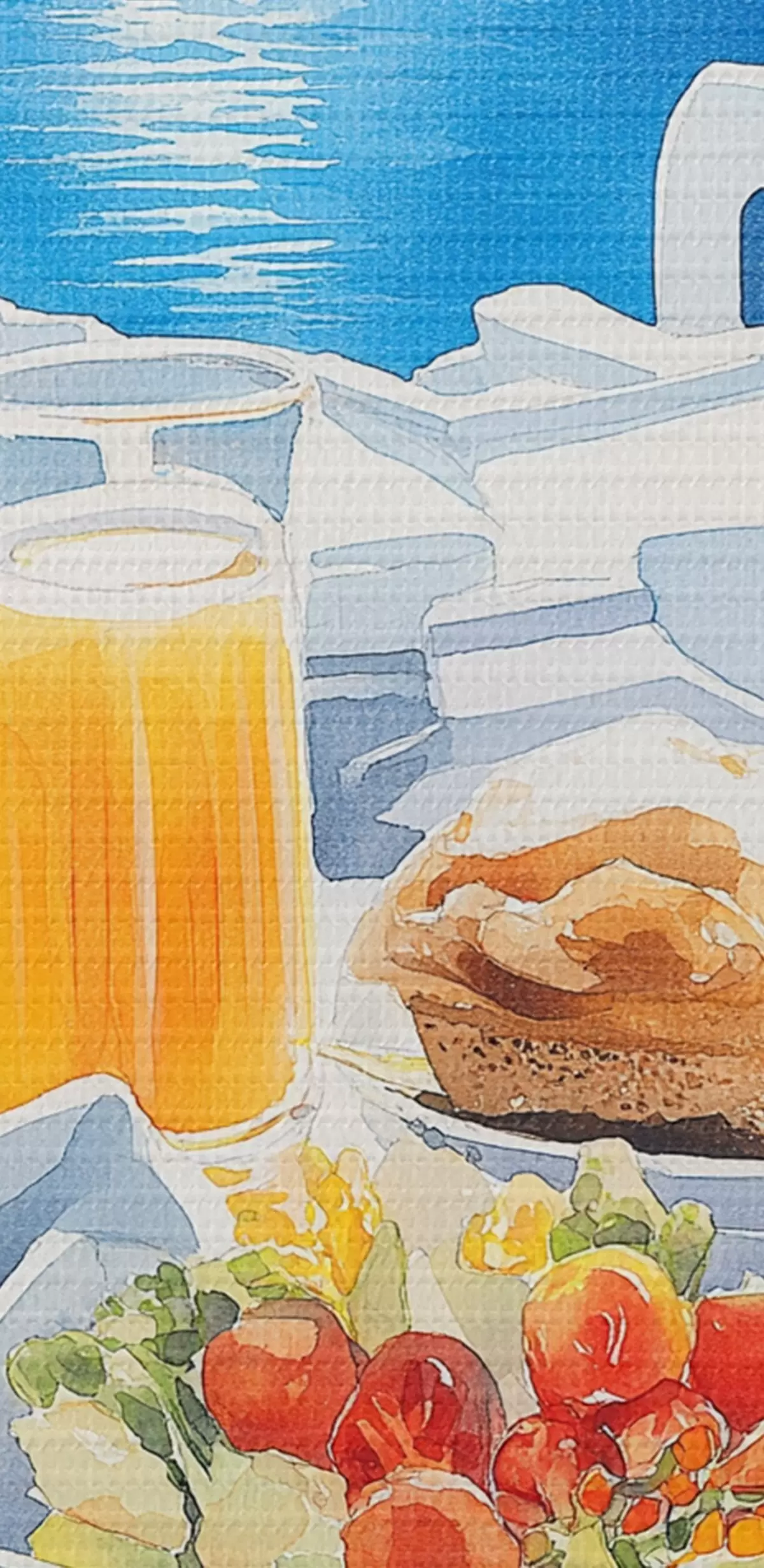Quadri Paesaggi di Santorini, colazione, stile acquerello, città vecchia Nr s42454