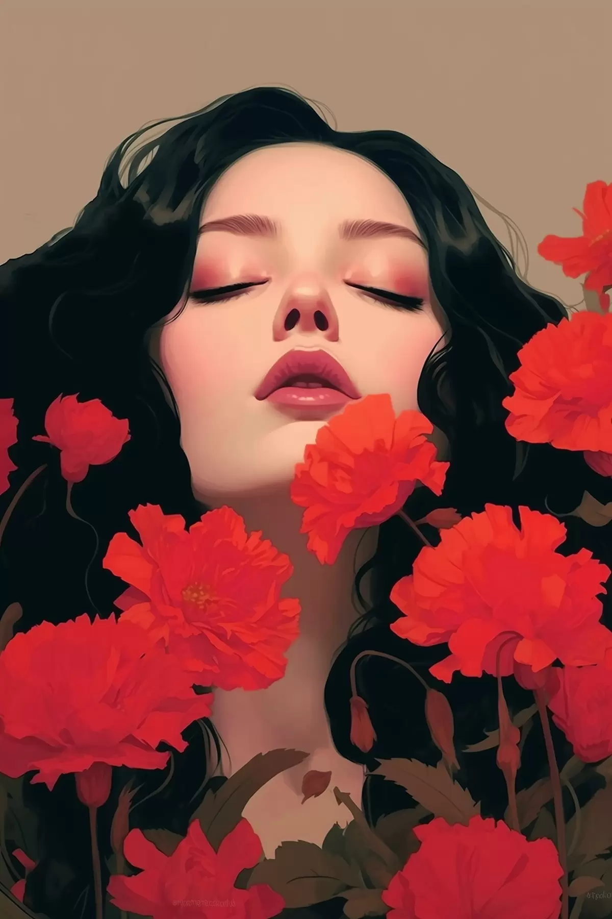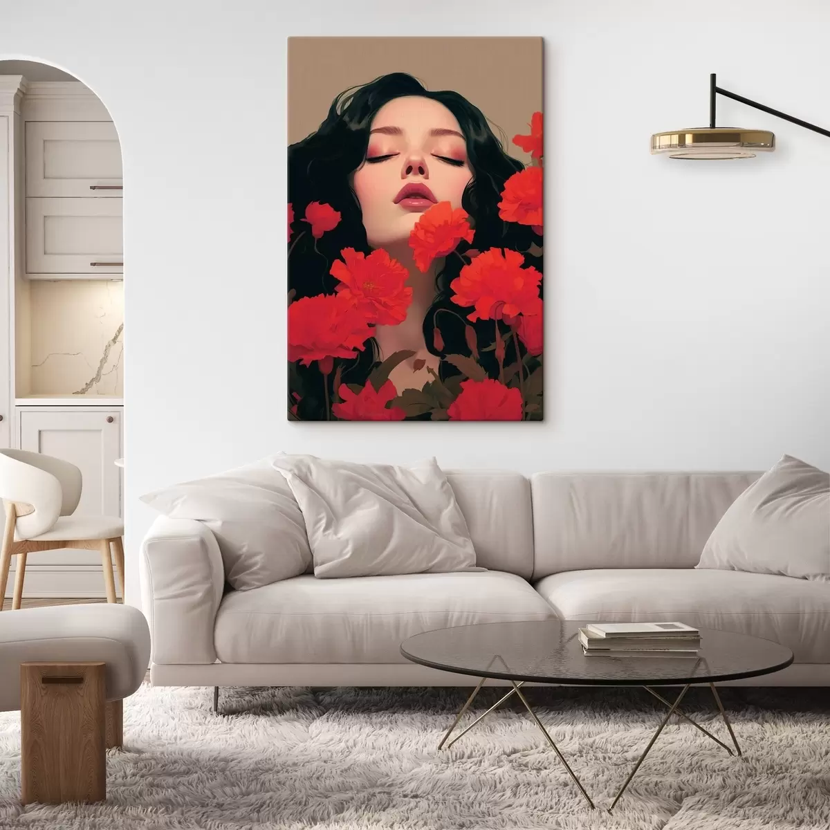 Quadri Ritratto femminile tra fiori rossi Nr s42478
