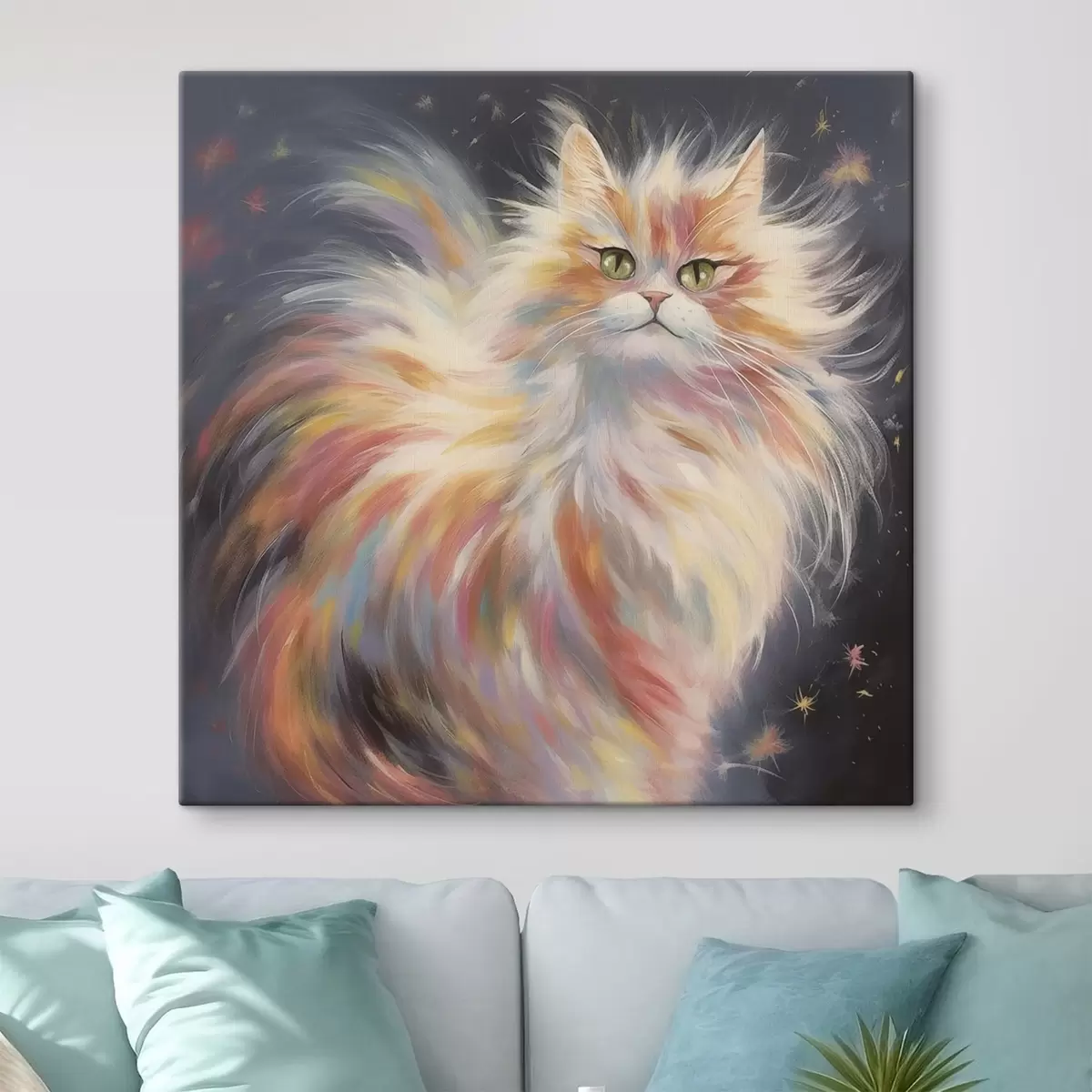 Quadri Gatto soffice con pelliccia colorata su sfondo scuro Nr s42484